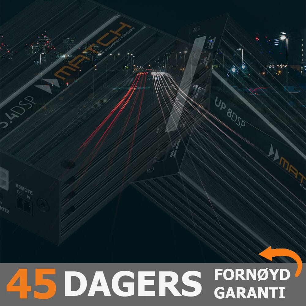 På bilspesifikke Match lydoppgraderingspakker, Match Plug&Play forsterkere og enkelte andre produkter fra Helix og Match tilbyr vi hele 45 dagers fornøydgaranti. Er du ikke fornøyd, så får du pengene tilbake.