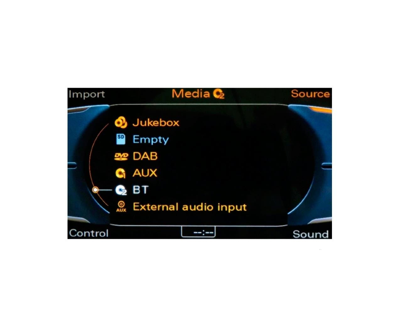 Kit som lar deg koble til en ekstern lydkilde via BT Audio eller Aux minijack til infotainmentsystemet i en Audi med MMI 3G