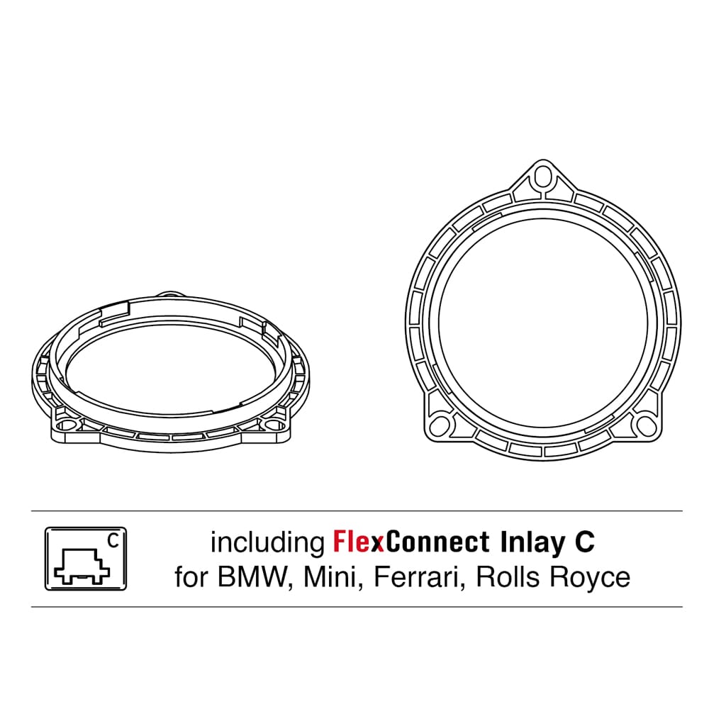FlexMount er Audiotec Fischer's patenterte monteringssystem, basert på spesielt utviklede adapterringer.