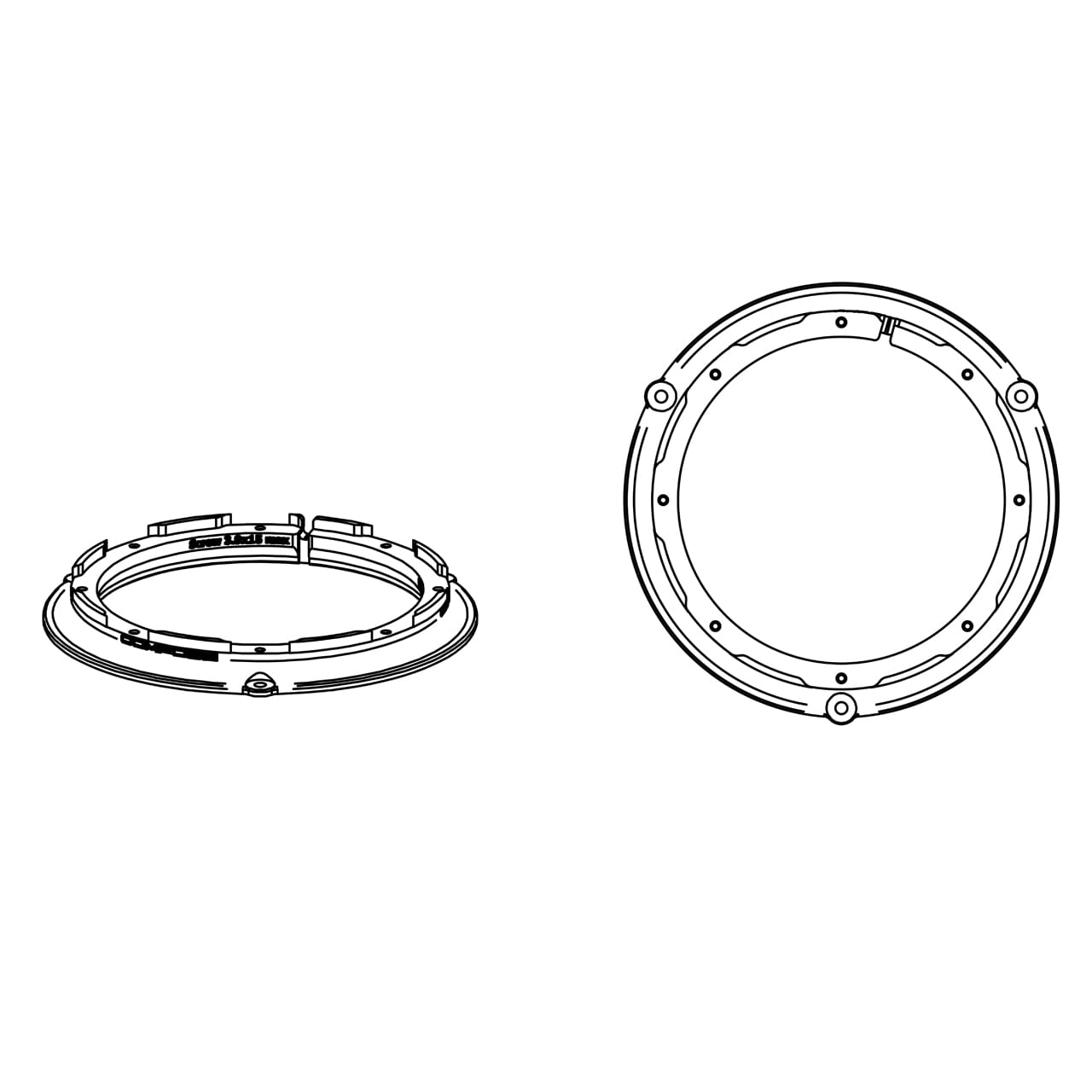 - Bilspesifikke adapterringer for profesjonell og akustisk optimalisert integrasjon av 6,5" Helix Compose mellomtone med FlexMount165.