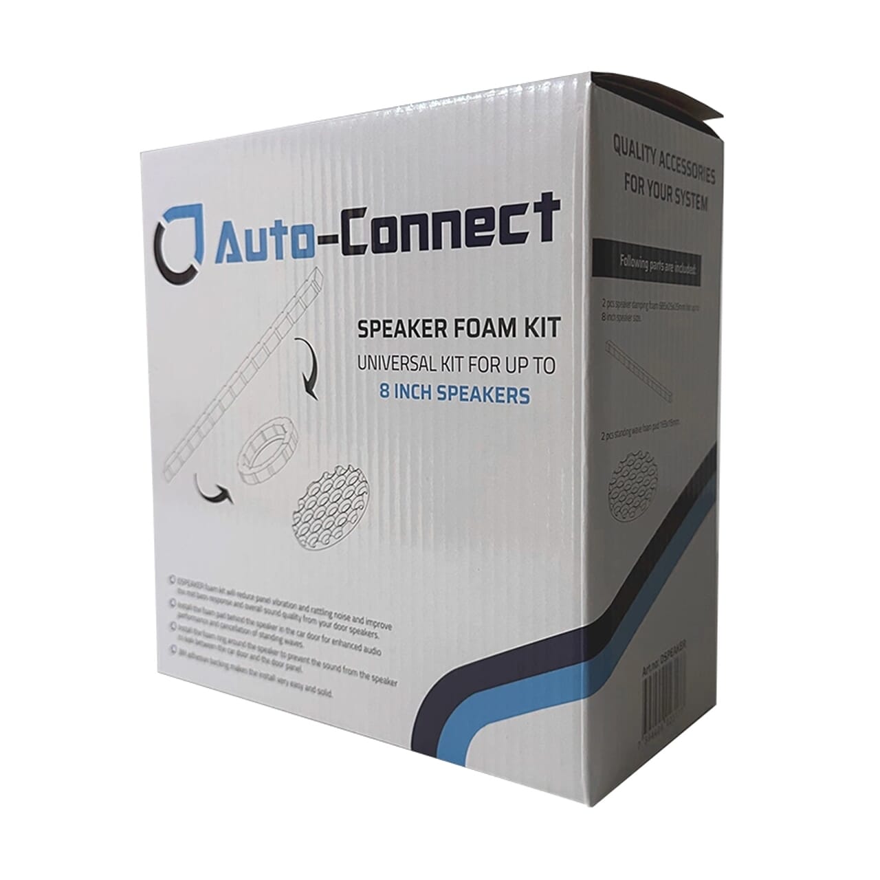 Auto-Connect DSPEAKER er en pakke med to demperinger og to dempeplater. Dempeplaten monteres på dørblad i bakkant av høyttaler, mens demperingen kappes i passende lengde og påføres rundt høyttaler for å tette mellom høyttaler og dørpanel.