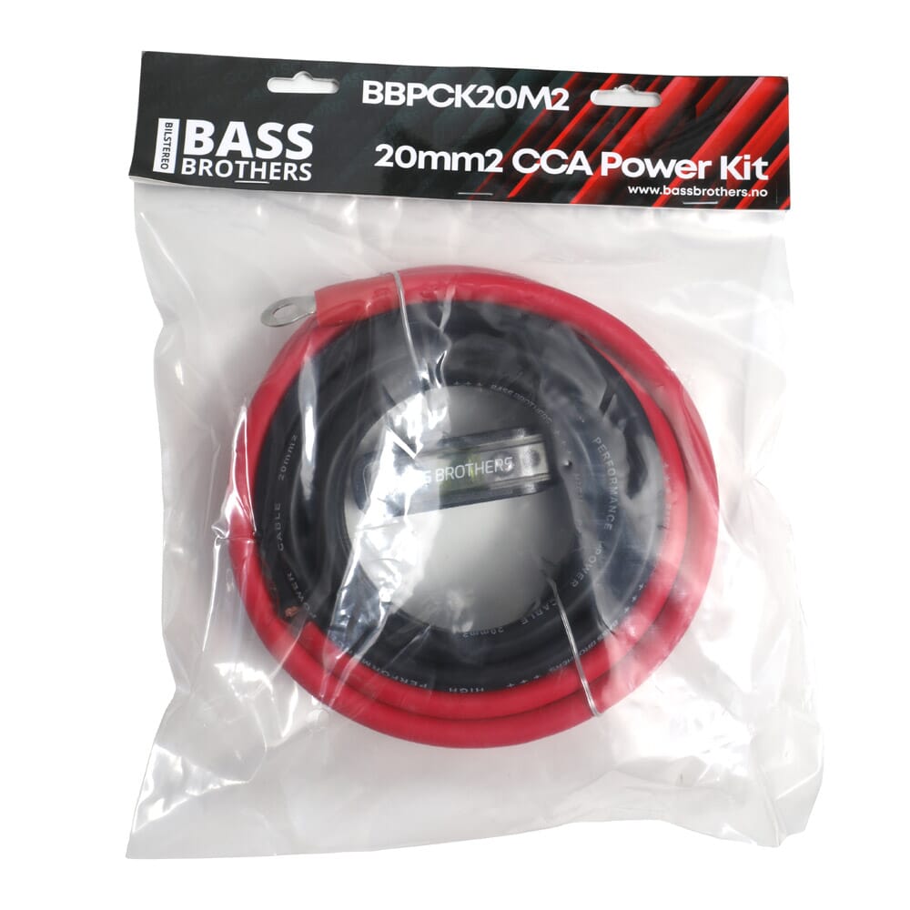 BBPCK20M2 er strømkabelsett for tilkobling av forsterker, utviklet av oss hos Bass Brothers. Kablene er laget av CCA (Copper-Clad Aluminium) og er derfor lette og myke å jobbe med.