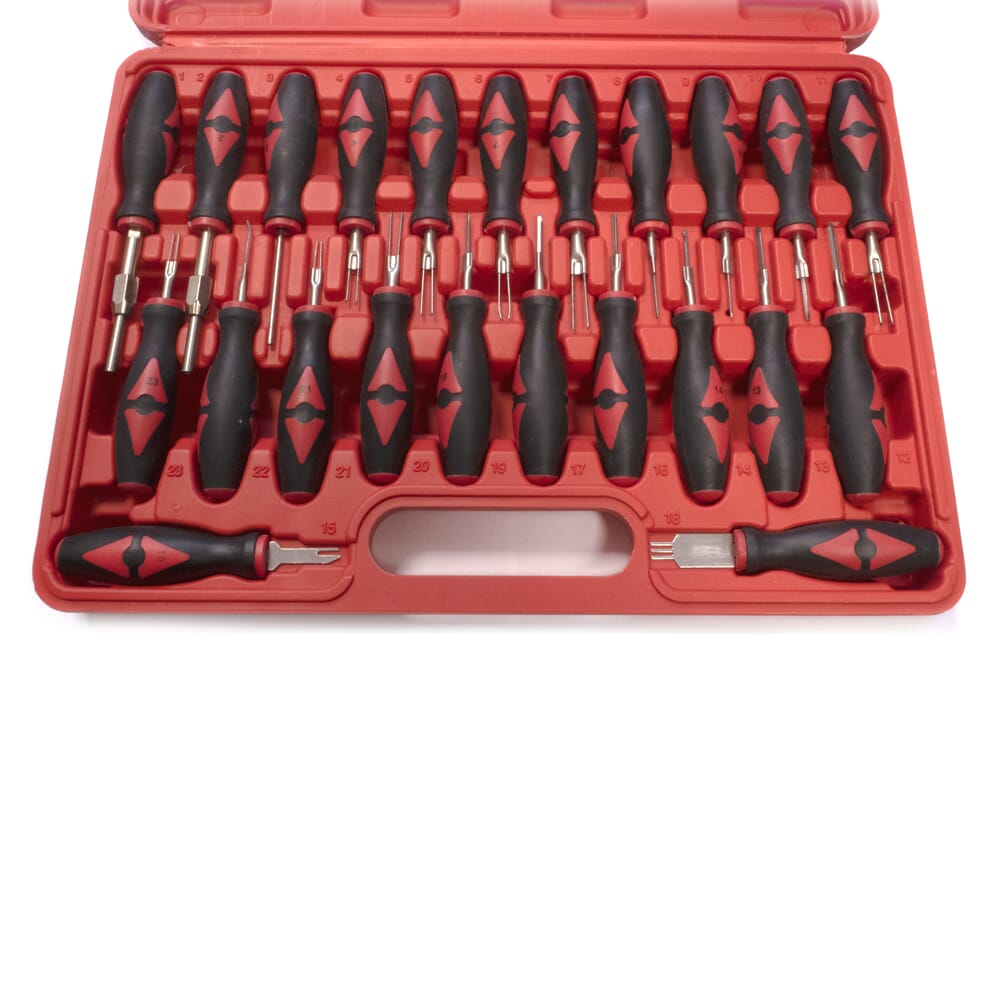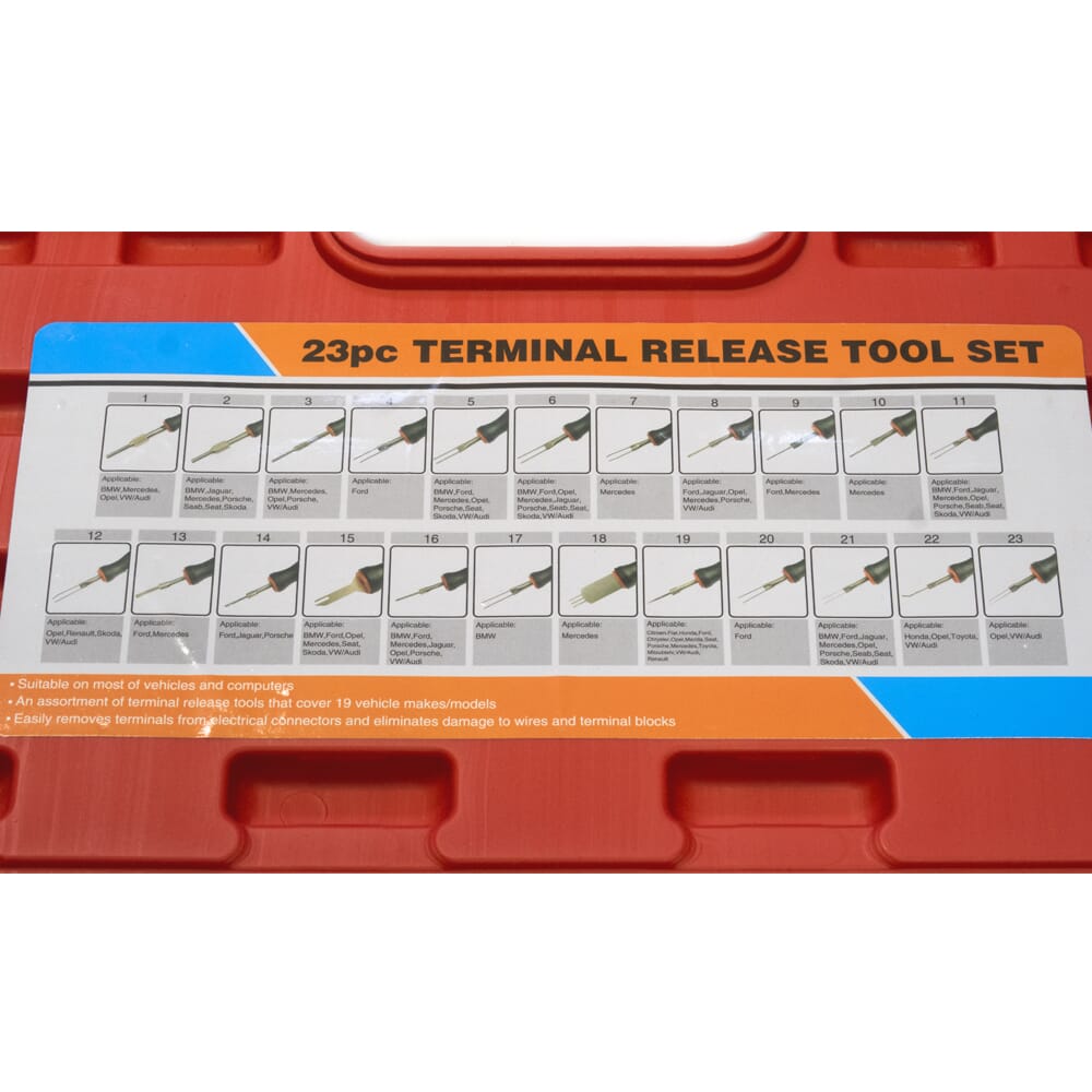 Verktøy spesielt utformet for å løsne terminalkontakter.Passer blant annet for bruk i:AudiBMWChryslerFiatFordHondaJaguarMazdaMercedesMitsubishiOpelPorscheRenaultSaabSeatSkodaToyotaVW