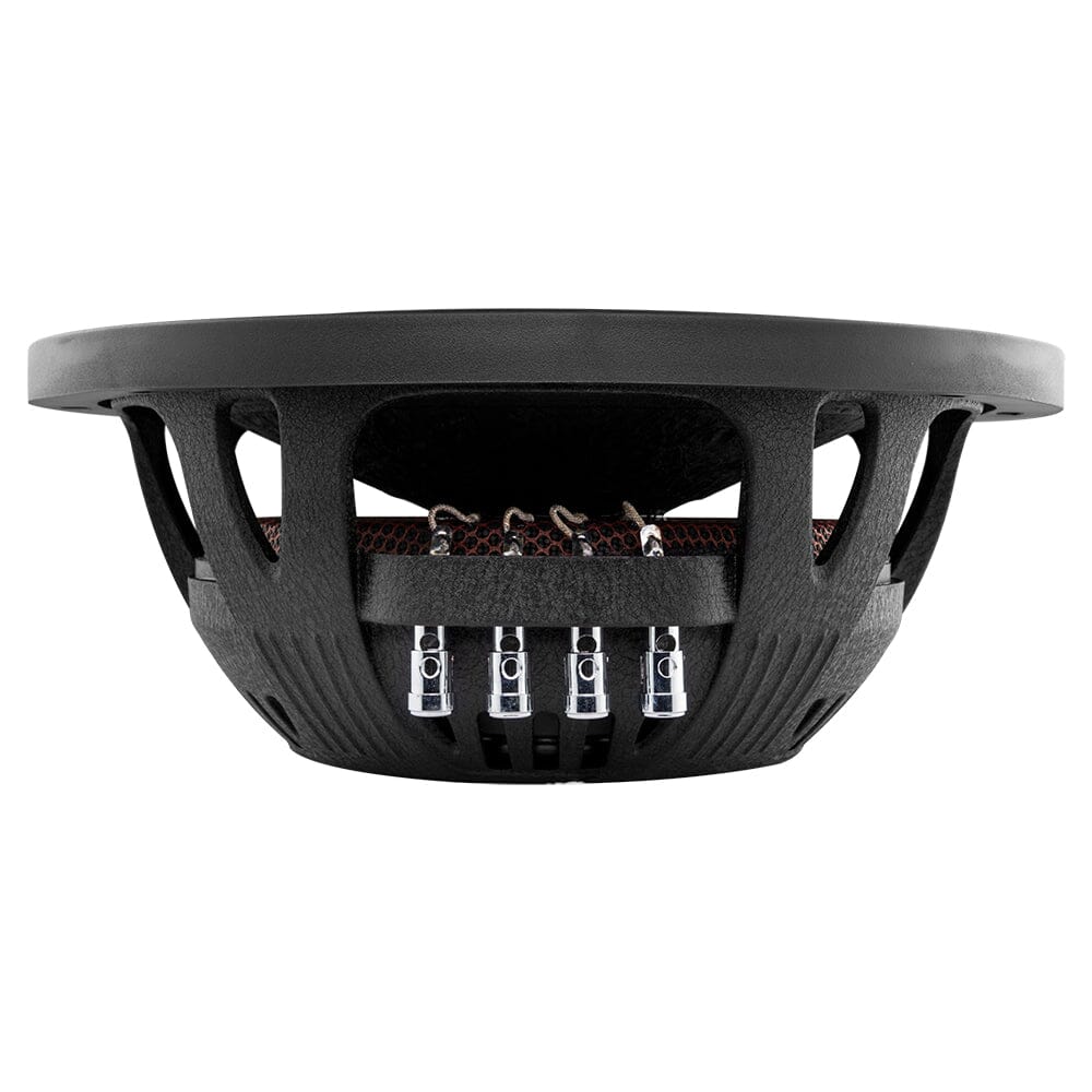Den 2.5-tommers talspolen i aluminium er viklet med kobber for å håndtere langvarig belastning og holde temperaturen i sjakk. Sammen med ferrittmagneten på 62 oz og den stabile aluminiumskurven med svart korrugert finish leverer konstruksjonen et stramt og kontrollert basstrykk selv ved høye lydnivåer. Gummisurrounden er sydd for ekstra holdbarhet, og membranen i papp med glassfiberstøvbeskyttelse kombinerer lav vekt med høy stivhet for rask respons og minimal forvrengning.