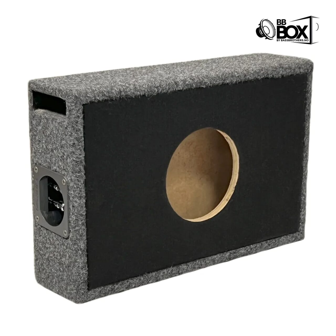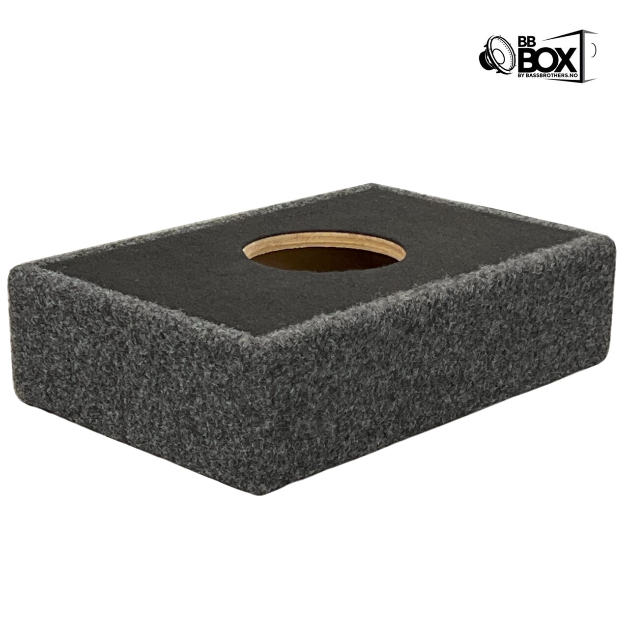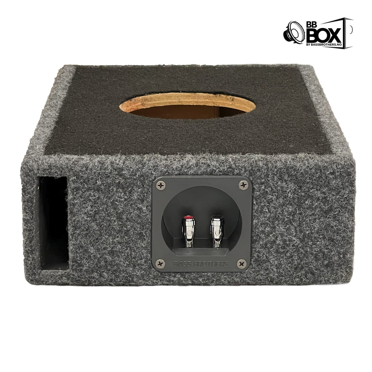 Alle basskassene i BB BOX-serien er designet og bygget etter Bass Brothers sine egne preferanser, både hva gjelder fysisk utforming, utseende og tuning. Vi ønsker å levere solide kvalitetskasser konstruert for å gi deg best mulig lydresultat. Kassene er bygget i MDF og pent trukket i filt. Push-terminal av høy kvalitet med ferdig loddet høyttalerkabel i kassen gjør monteringsjobben din både enklere og tryggere. Kutthull er dimensjonert for å passe de aller fleste basser i sortimentet, uavhengig av fabrikat.
