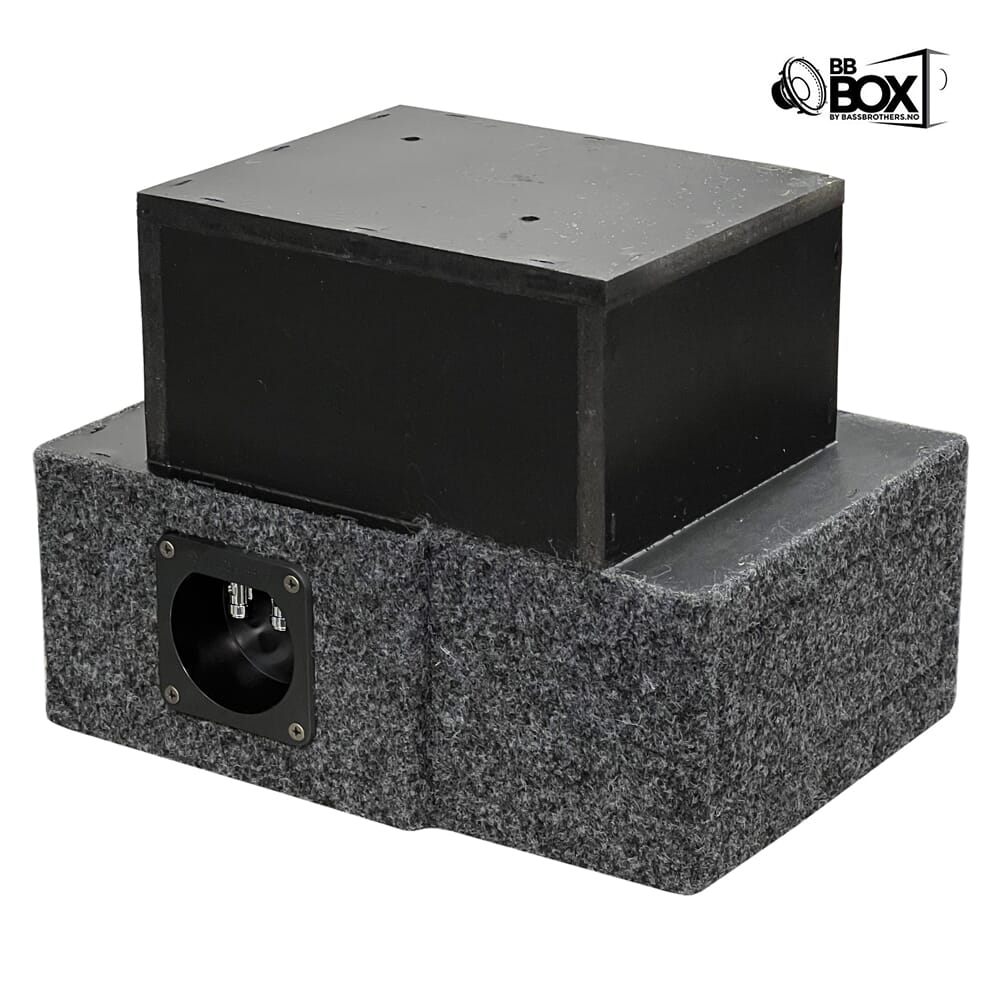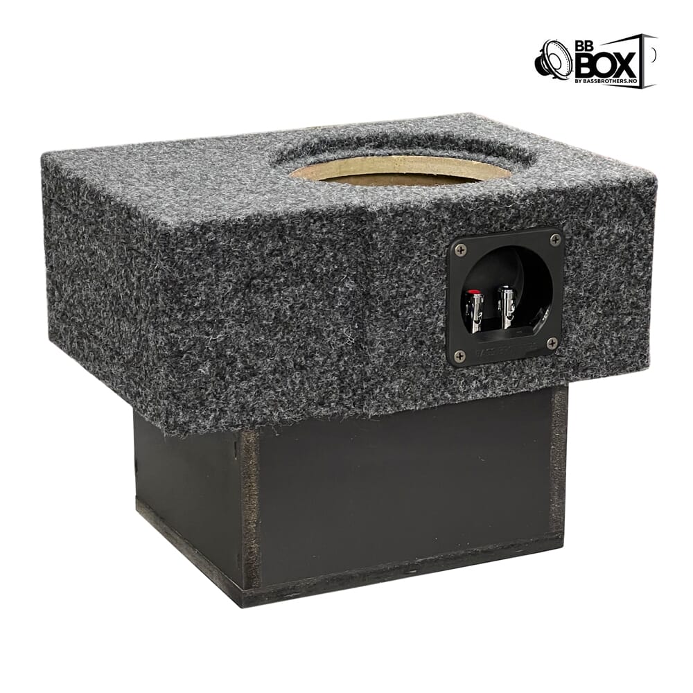 Alle basskassene i BB BOX-serien er designet og bygget etter Bass Brothers sine egne preferanser, både hva gjelder fysisk utforming, utseende og tuning. Vi ønsker å levere solide kvalitetskasser konstruert for å gi deg best mulig lydresultat. Kassene er bygget i MDF og pent trukket i filt. Push-terminal av høy kvalitet med ferdig loddet høyttalerkabel i kassen gjør monteringsjobben din både enklere og tryggere. Kutthull er dimensjonert for å passe de aller fleste basser i sortimentet, uavhengig av fabrikat.