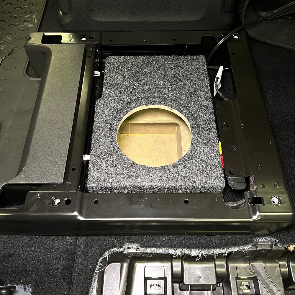 Kasse spesielt utformet for skjult montering under passasjersetet i 5-seters ID.Buzz 2022 og nyere, samt ID.Buzz Cargo 2-seter. Kassen er bygget i MDF og utformet spesielt for GAS MAX S1-6D1 6,5" subwoofer (ikke inkludert). Den kommer ferdig med terminal på siden og høyttalerkabel inne i kassen.