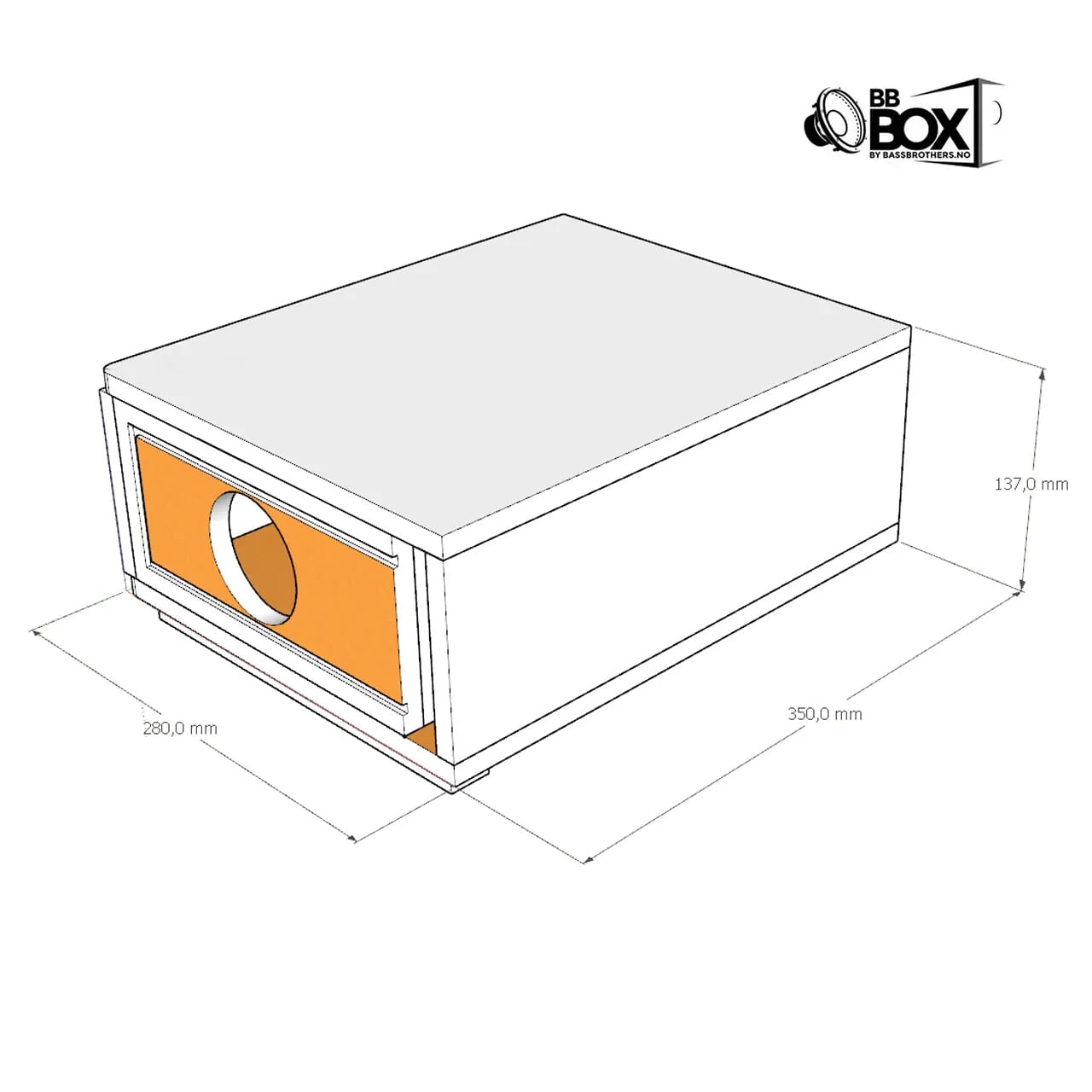 Alle basskassene i BB BOX-serien er designet og bygget etter Bass Brothers sine egne preferanser, både hva gjelder fysisk utforming, utseende og tuning. Vi ønsker å levere solide kvalitetskasser konstruert for å gi deg best mulig lydresultat. Kassene er bygget i MDF og pent trukket i filt. Push-terminal av høy kvalitet med ferdig loddet høyttalerkabel i kassen gjør monteringsjobben din både enklere og tryggere. Kutthull er dimensjonert for å passe de aller fleste basser i sortimentet, uavhengig av fabrikat.