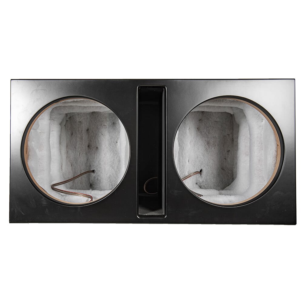 Basskasse - GAS GV215DBXGAS GV215DBX er en ferdigbygd 2x15" basskasse med en matt svart finish, skapt for deg som elsker et utrolig trykk og høy dB i bilen. Kassen er optimert for både lydtrykk og god lyd. Den er ekstra forsterket for å gi maksimal stabilitet og optimering av lydtrykket.Kassen er bygget med 25 mm MDF og slisseport for minimal blåselyd. Forsenkede gavler inni kassen, og en ekstra dobbel baffel, gir maksimal stødighet.