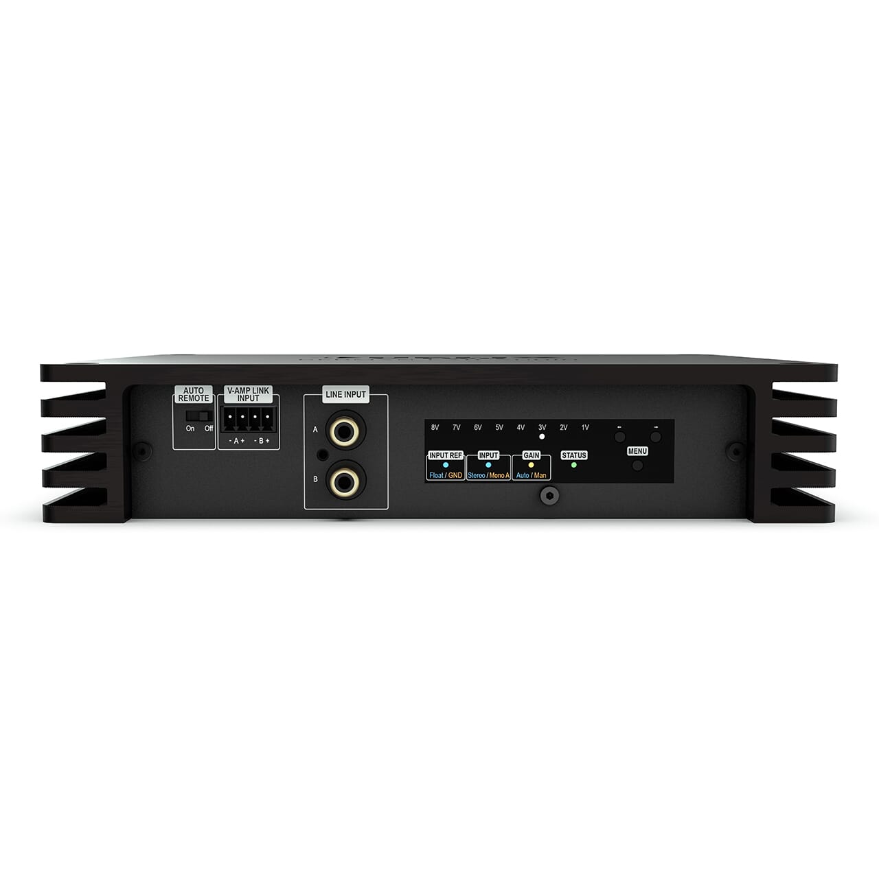 - V-AMP Link - spesielt optimalisert inngang for tilkobling av en HELIX V-serieforsterker for kraftig signalforsterkning i subwoofer- eller høyeffekts-høyttalerapplikasjoner