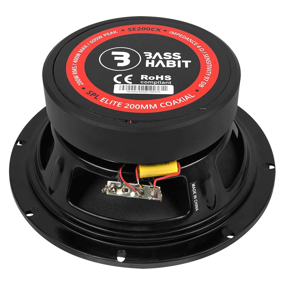 Bass Habit SPL Elite SE200CX er en tøff 8" fulltone med tung lyd og vettig prislapp. Bass Habit har fått frem en skikkelig spilleglad høyttaler som på alle vis gjør seg fortjent til tittelen "SPL Elite". Den gromme kombinasjonen av midbass/mellomtone med kon av upresset papir og M-Roll Cloth oppheng, sammen med en solid 25mm stor titaniumdiskant, så kan vi med sikkerhet si at SE200CX gjør det lett å få til et lydbygg som garantert vil høres.
