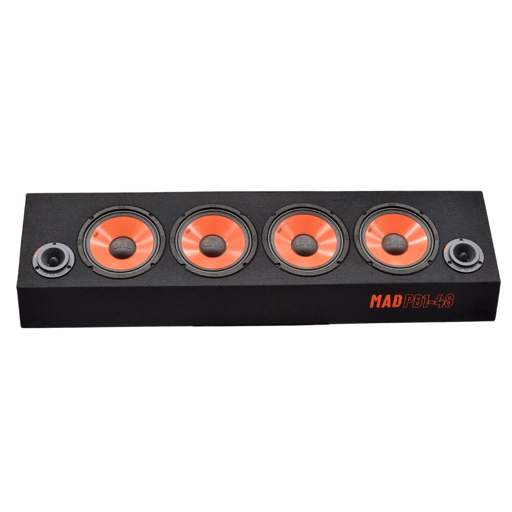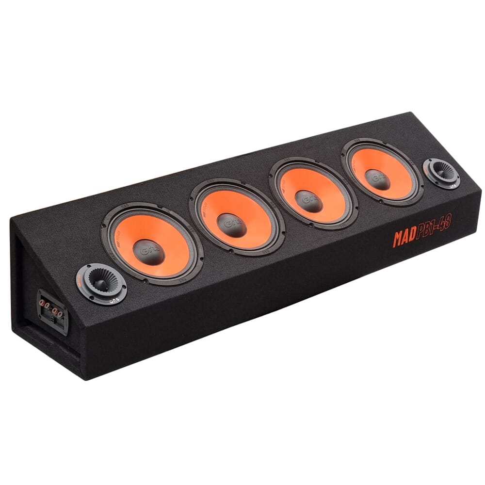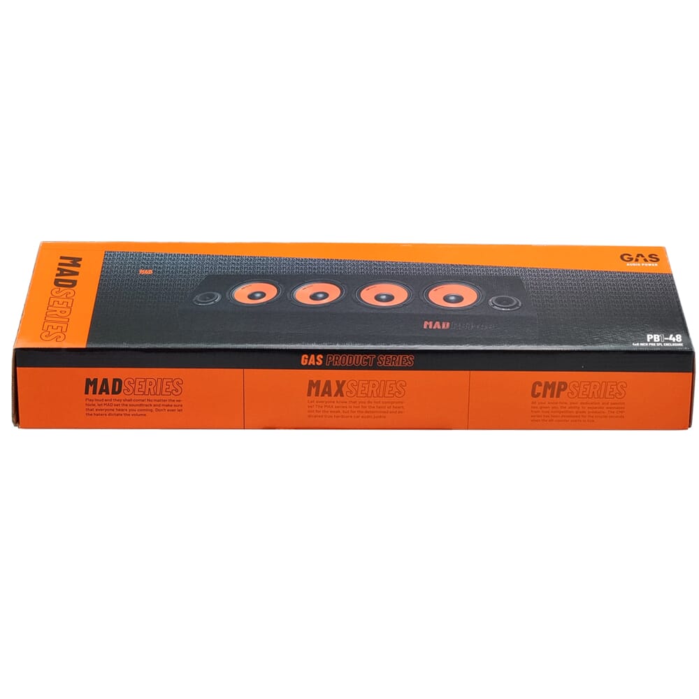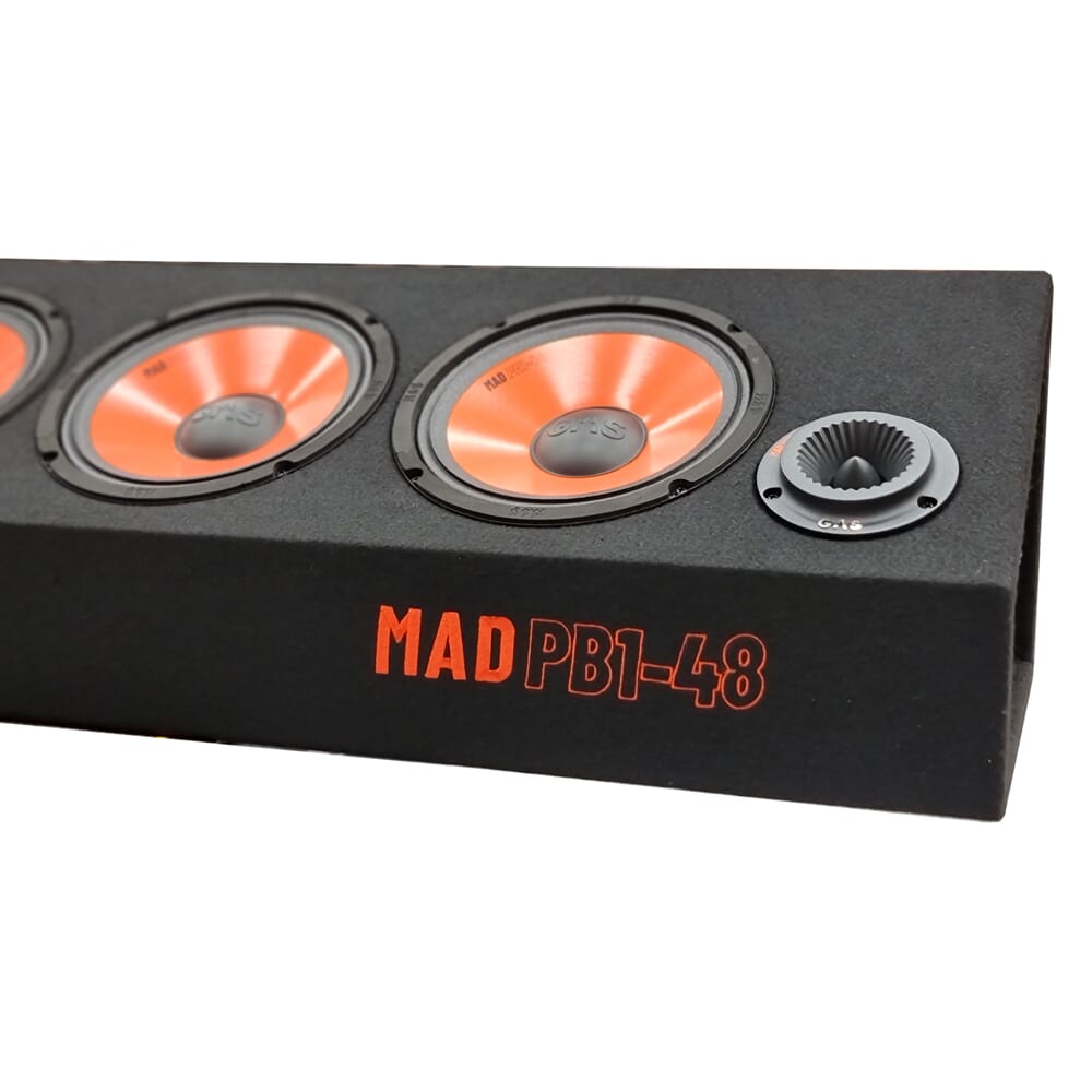 MAD PB1-48 er en videreutvikling av GAS sine gromme Raggarplanke PSB4645VS. Kassen er nå helt portet, og dermed et bevis på at lydtrykket er helt og holdent fokuset her. En kul nyhet er de nye AST-terminalene. Dette er en smart terminal med aktiv/passiv-modus som lar deg forbikoble det innebygde delefilteret og dermed gjør det mulig å koble til to separate forsterkere - en som driver midbassene og en som driver diskantene. Ved å koble på denne måten vil du får større kontroll over delingen samtidig som du sikrer at hvert enkelt element får tilstrekkelig med effekt.