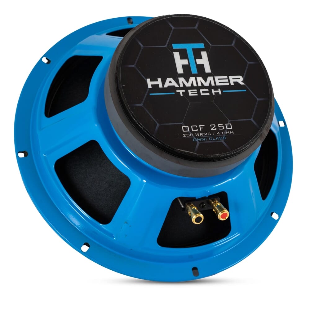 Hammer Tech Omni Class OCF10 er et unikt 10? mellom-/fullregister fra lydekspertene på Hammer Tech! Her har de arbeidet frem et unikt design med ?Dual Cone?-design, tåler vann og høy effekttålighet er dette en mangesidig høyttaler som gjør seg utmerket til det skikkelig store SPL-bygget, eller på en båt eller en ATV! Takket være sin unike kondesign, som påminner om en koaksialhøyttaler, kan høyttalere spille enda opp til 16.000 Hz.