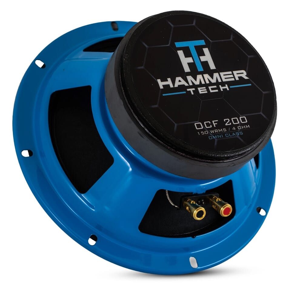Hammer Tech Omni Class OCF8 er et unikt 8" mellom-/fullregister fra lydekspertene på Hammer Tech! Her har de arbeidet frem et unikt design med Dual Cone-design som tåler vann og høy effekt. En fleksibel høyttaler som gjør seg utmerket til det skikkelig store SPL-bygget i bil, på en båt eller en ATV! Takket være sin unike kondesign, som påminner om en koaksialhøyttaler, kan høyttalere spille helt opp til 16.000 Hz.