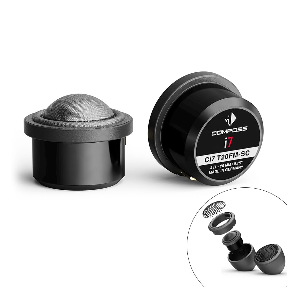 Compose i7 diskanten er utstyrt med en finmasket silkedome med visco-elastisk Acronal-belegg på begge sider, noe som garanterer en brilliant og myk diskantrespons. I tillegg gir bruk av lammeull en veldig lav resonansfrekvens.