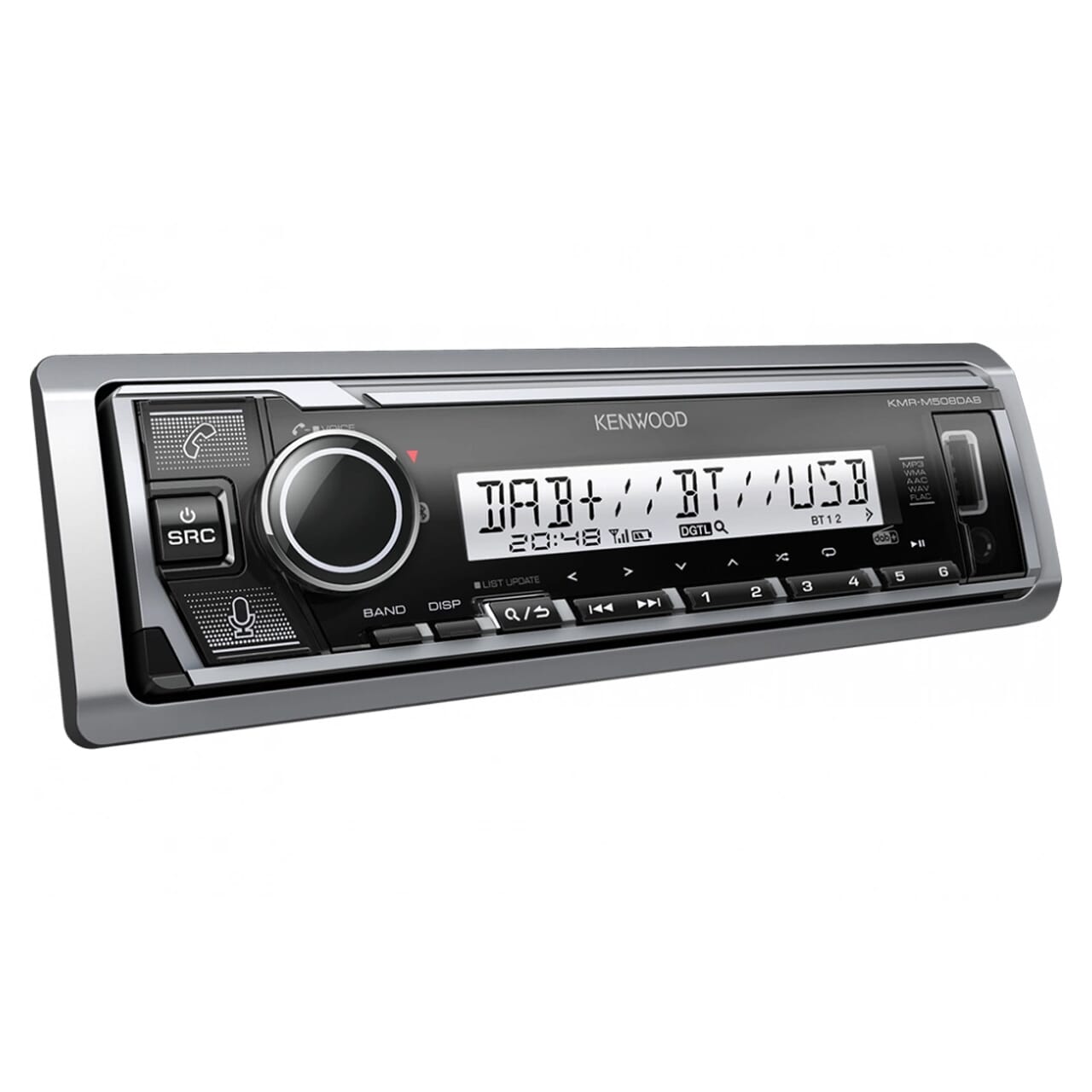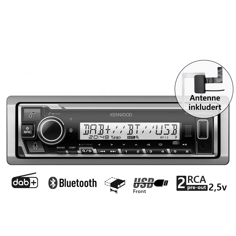 Kenwood KMR-M508DAB er en marineradio fra Kenwood med mange funksjoner. Lytt til den krystallklare DAB+ radioen, eller spill musikk gjennom Bluetooth, AUX eller USB. I tillegg til dette har den til og med støtte for Amazon Alexa.
