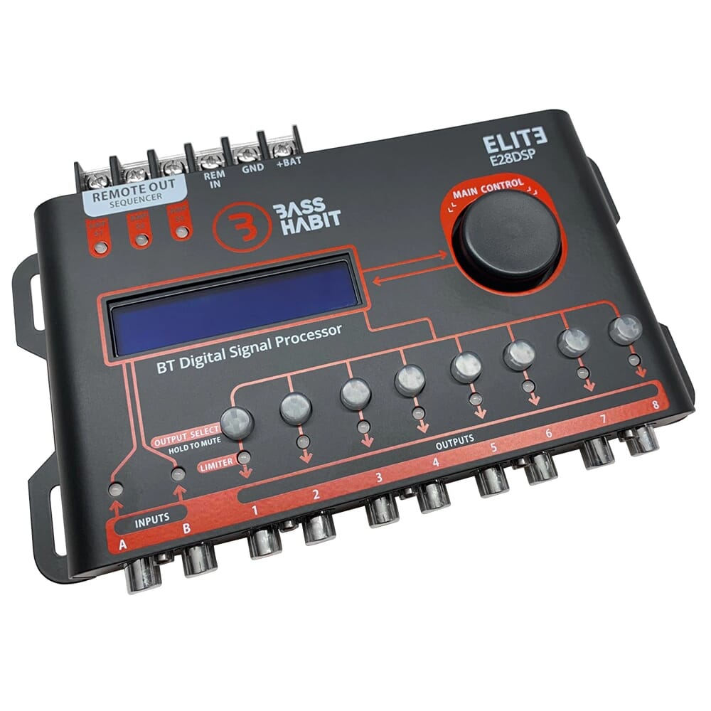 Bass Habit E28DSP er fremfor alt en DSP for deg som vil bygge et fett system med mange forsterkere som driver midbasser og diskanter, høyttalere i hattehyllen samt en basskasse.