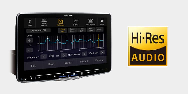 Alpine har i alle år tronet øverst som leverandør av hovedenheter av ypperste kvalitet og med den beste lydkvaliteten. Med iLX-F905D videreføres disse tradisjonene. Samtidig har iLX-F905D utmerkede muligheter for lydjustering og optimalisering. I avansert modus har hovedenheten hele 56 bånd tilgjengelig i parametrisk EQ, aktivt delefilter, 6 kanals tidskorrigering og en rekke justeringsmuligheter i Alpine sine velkjente Bass Engine SQ og MediaXpander.