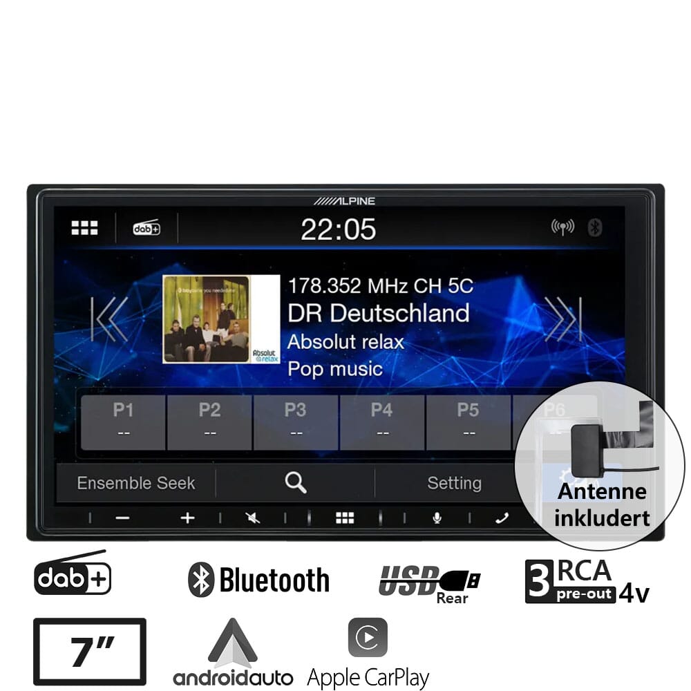 Dette er Alpine iLX-W690D, en digital media mottaker med høy-oppløst 7-tommer kapasitiv berøringsskjerm, som perfekt fungerer sammen med din smarttelefon og Apple CarPlay og Android Auto. Den er designet for å gi brukere av smarttelefon alle egenskapene de ønsker og trenger på farta. Den innebyggede DAB+ radio mottakeren lar deg nyte radio med utmerket lydkvalitet, enhetens høy-hastighets ladefunksjon sørger for at telefonen raskt lades opp. Blåtann musikk-strømme funksjoner lar alle i bilen bidra med deres telefoner og musikk. En ren musikkfest på veien. Enheten har en svært grunn monteringsdybde på kun 6cm. Dette gjør at radio passer inn i biler uten et fullt 2 DIN monteringsrom.