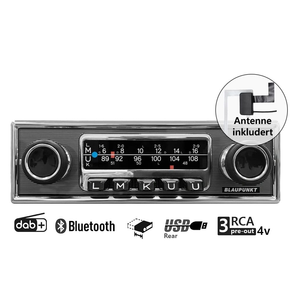 Blaupunkt Frankfurt Stereo MB er en moderne retrostereo for deg som vil beholde det tidsriktige uttrykket i en klassisk bil men likevel ha moderne funksjoner. Her møtes ekte 70-tallsdesign med en digital fargeskjerm, tre par lavnivåutganger, Codem IV-radiotuner, DAB+, Bluetooth Twin Connect og mange tilkoblinger. Den store fordelen er de tre installasjonsmulighetene som gjør at stereoen passer i alt fra standard 1 DIN til små originaluttak og klassiske bakmonterte shaft mount-installasjoner.