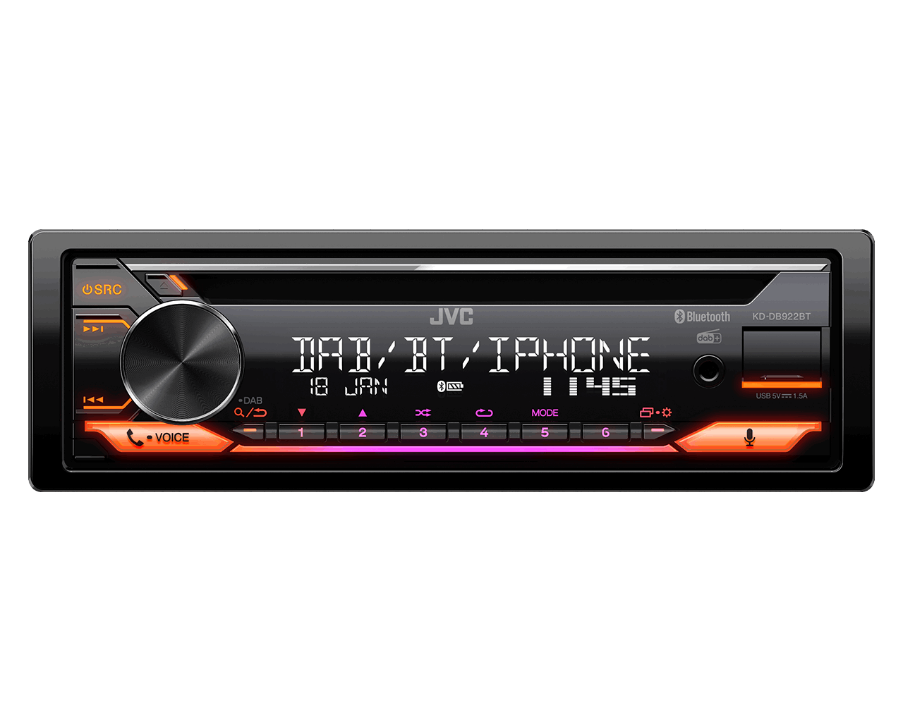 Stilren CD Receiver fra JVC med alle de nødvendige tilkoblingene en bilradio skal ha i dag. Med den Innebygget Bluetooth modulen kan du strømme musikken trådløst til bilradioen fra flere enheter med JVC Streaming DJ funksjon. KD-DB922BT har selvfølgelig DAB radio, så her er det bare å velge blant dine favoritt kanaler. Har du musikken lagret på eksternt minne eller avspiller, kobles disse enkelt til via USB/AUX tilkoblingene i front.