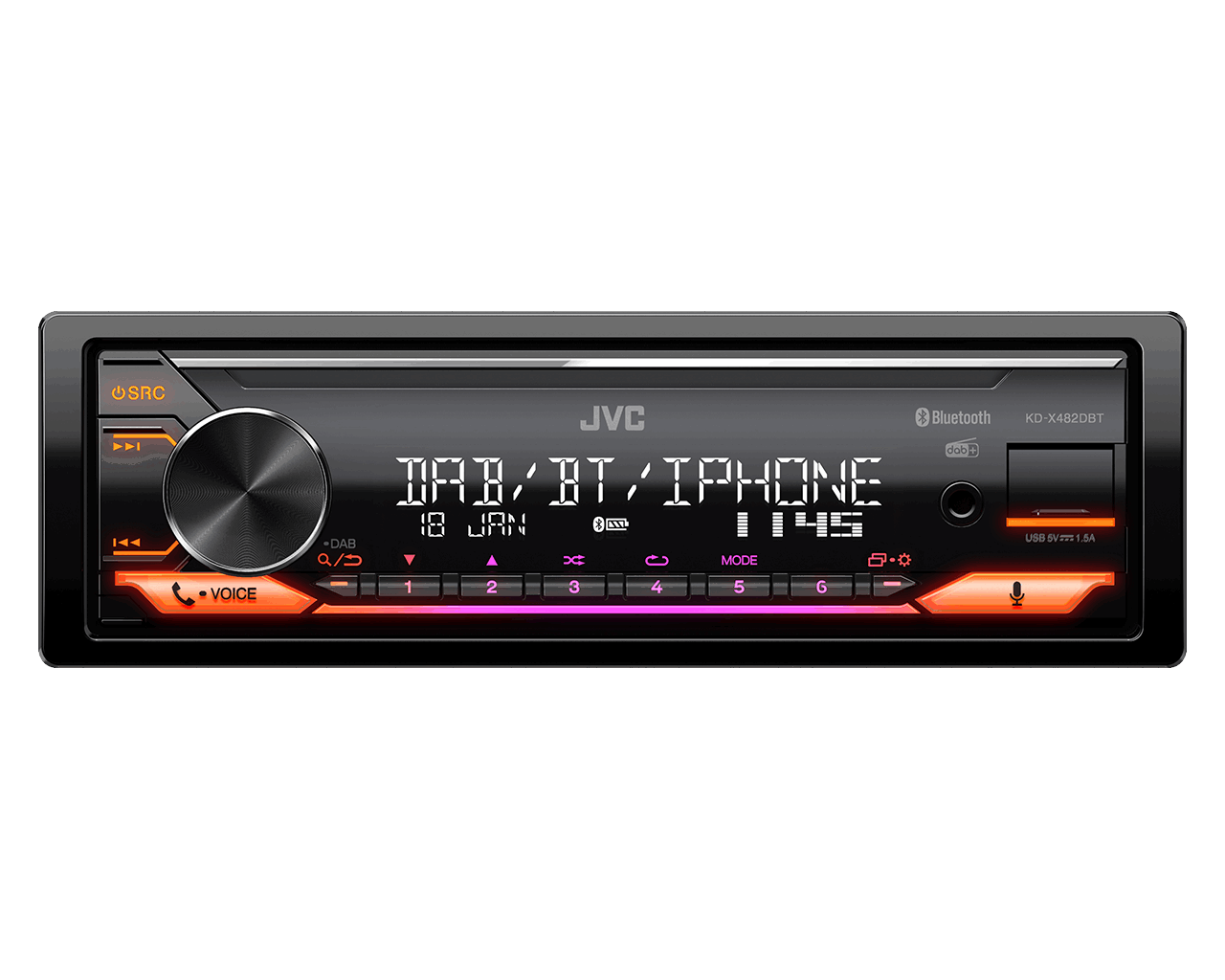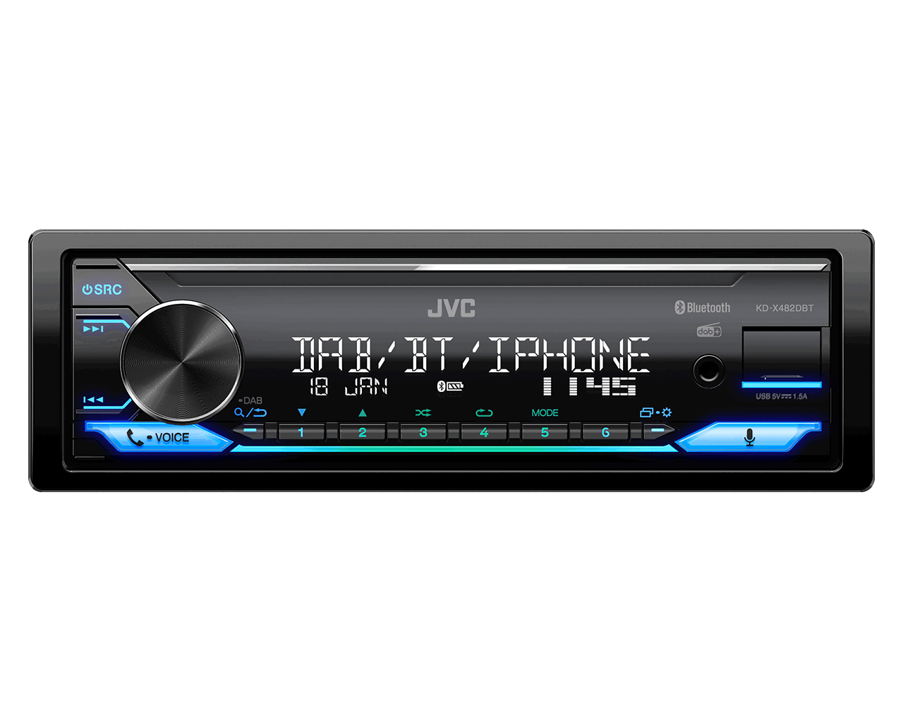 Foruten å kunne strømme musikk via blåtann og spille av dine digitale media filer fra USB, er KD-X482DBT DAB bilradioen fra JVC klargjort for Alexa App. Alt du trenger å gjøre er å laste ned Amazon Alexa-appen til smarttelefonen din. Koble appen til KD-X482DBT, og så kan du be Alexa om den siste trafikkinformasjonen, værmeldingen og legge til / høre påminnelser osv. Denne bilradioen har også Bluetooth handsfree-samtaler og musikkstrømming, Spotify-app klar og DAB-radio.