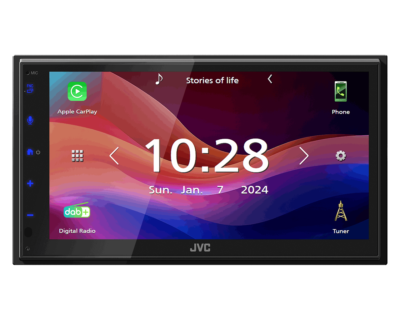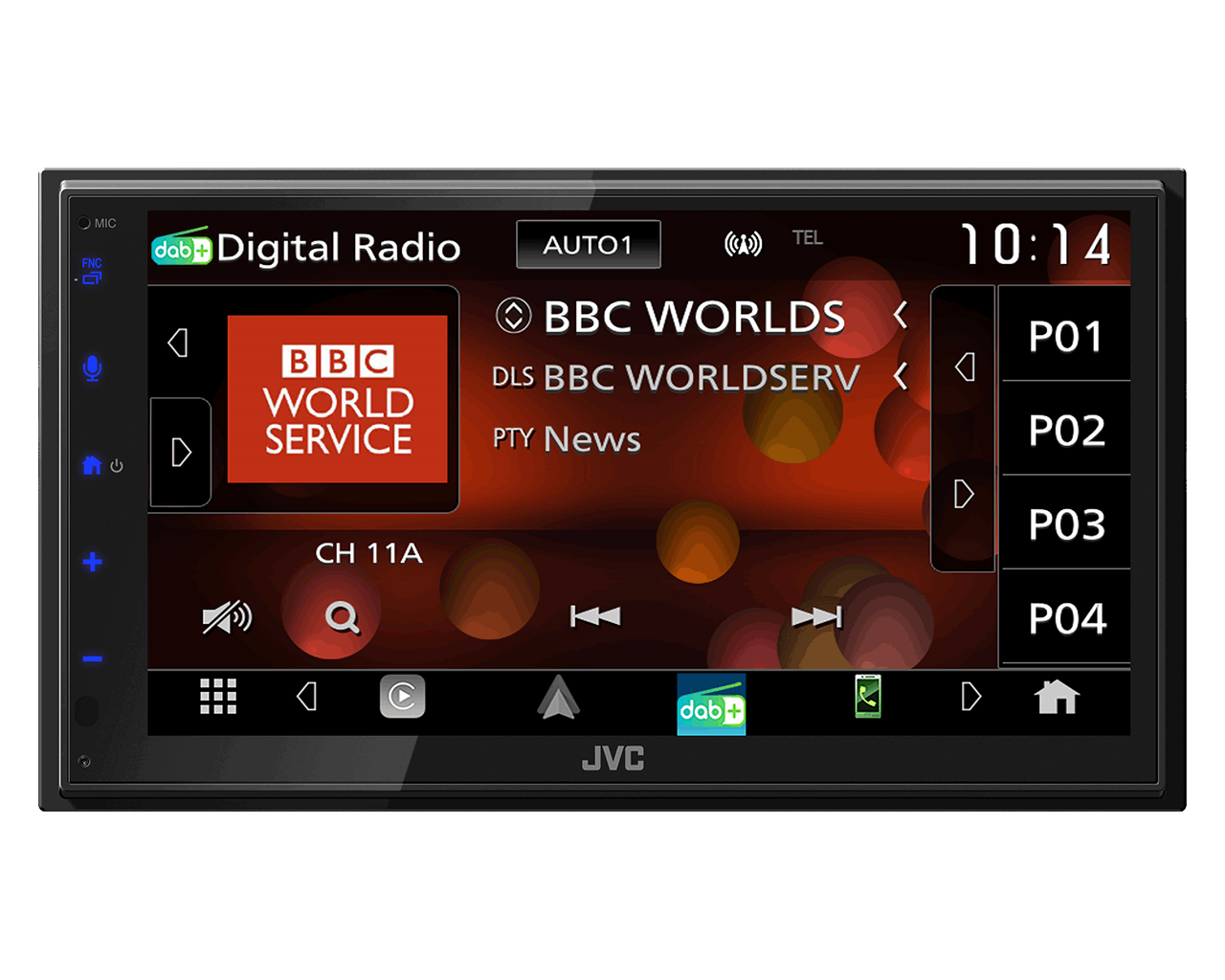 Multimedia hovedenhet med 6,8-tommer WSVGA kapasitiv berøringsskjerm. KW-M695DBW har innebygd AM/FM/DAB mottaker og trådløs Apple CarPlay og Android Auto.Med telefonspeiling kan du se og kontrollere din smarttelefon via radioens skarpe display.Innbygget blåtann håndfri med musikkstrømning. USB-C tilkobling med 2,1A ladning for telefon. KW-M695DBW har også avanserte lydinnstillinger med en 13 bands grafisk EQ og avansert tidskorrigering, slik at du kan optimalisere lyden etter ditt ønske.