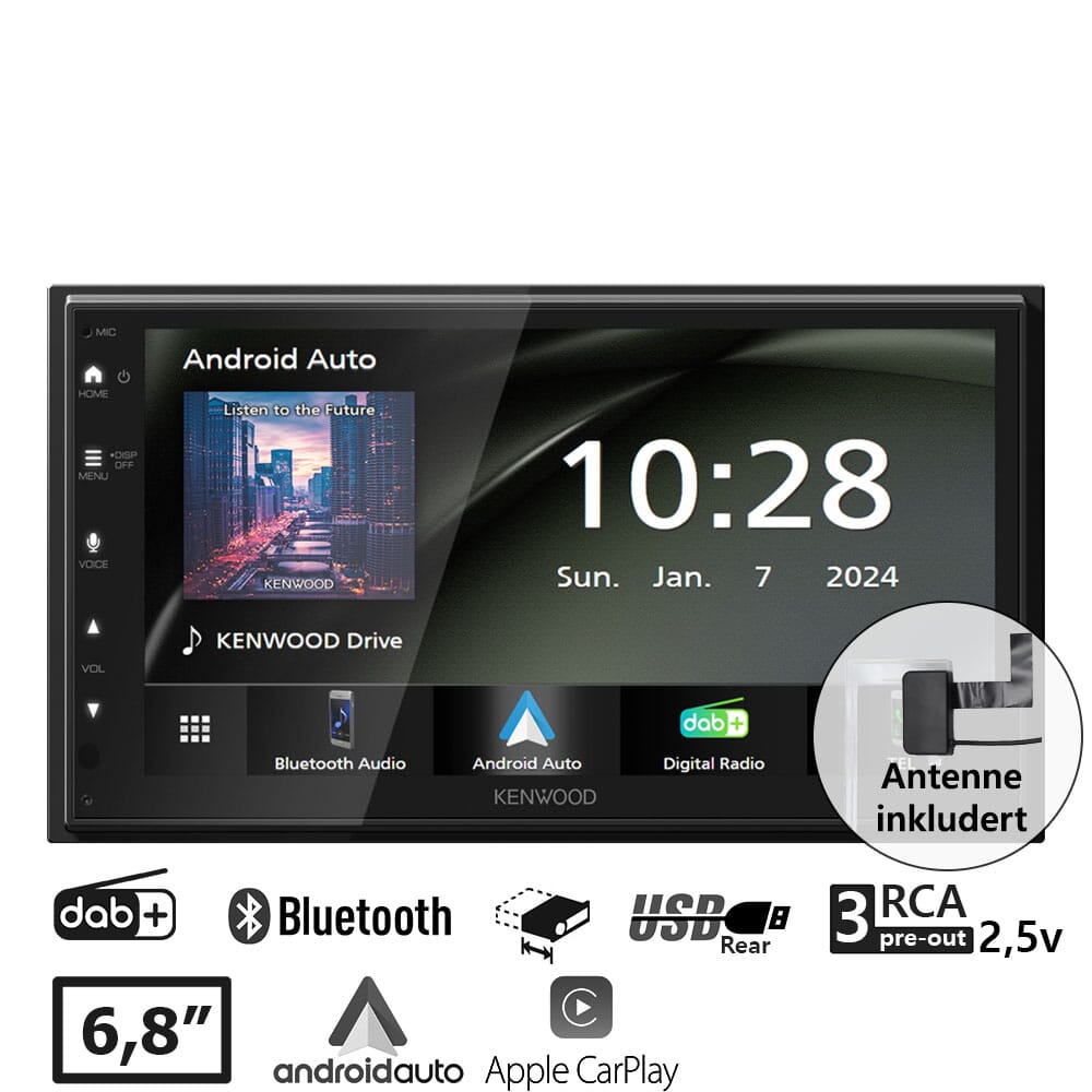 2-DIN In-Dash Multimedia AV Receiver med høydepunkt som DAB-radio og Hi RES WSVGA kapasitiv berøringsskjerm! Støtte for Apple CarPlay & Android Auto (kablet forbindelse). Blåtann med Handsfree og trådløs overføring av musikk fra telefon. Kan kobles opp mot 2 mobiltelefoner samtidig på blåtann. USB- og AUX-inngang. Viktigste funksjoner: