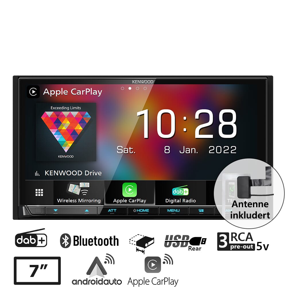 Kenwood DMX8021DABS er en multimedia spiller med 7" skjerm og støtte for mange forskjellige lyd og video filformater. Spilleren har en 13 bånds EQ og digital lydprosessor med tidskorrigering. Selv om spilleren ikke har innebygget navigasjon bruker du lett dette via tilkoblet telefon og bruk av trådløs Apple CarPlay og Android Auto. Du har både Apple Maps og Google Maps som alternativer ettersom hva slags telefon du har.