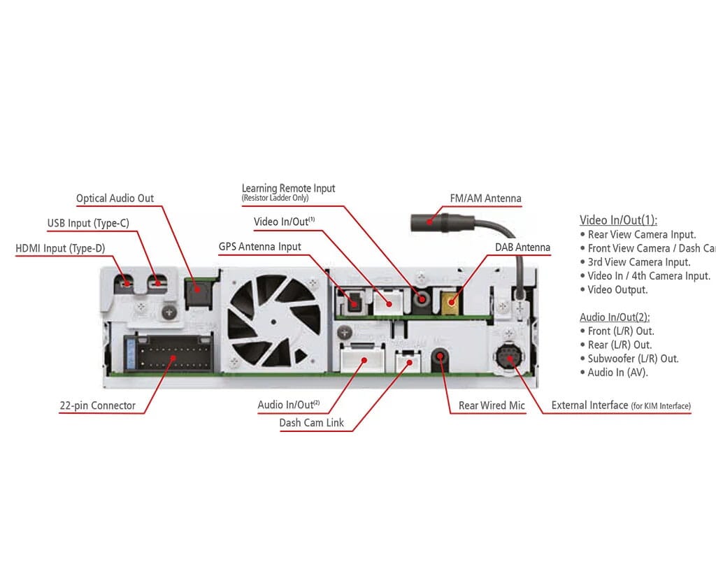 For å muliggjøre en smartere kjøreopplevelse har mottakerne 4 kamerainnganger* som gir maksimal komfort, fleksibilitet og sikkerhet. Med 4 kamerainnganger kan du koble til et KENWOOD dashbordkamera (eller et frontkamera), ryggekamera og blindkamera (venstre/høyre).
