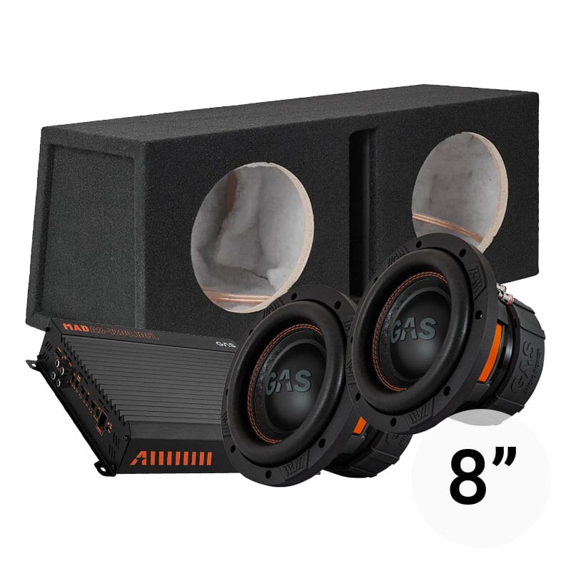 I denne pakken har vi kombinert en velbygd basskasse fra Auto-Connect med to grove 8" basshøyttalere fra GAS MAX-serien. Med forsterker fra GAS MAD A2-serien setter man hele 1200W RMS i sving på dette oppsettet. Stor og god basskasse sørger for ordentlig fet og fyldig bass, ute å gå på kompromiss med rytmikken.