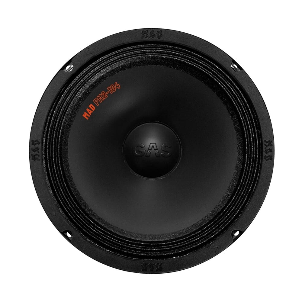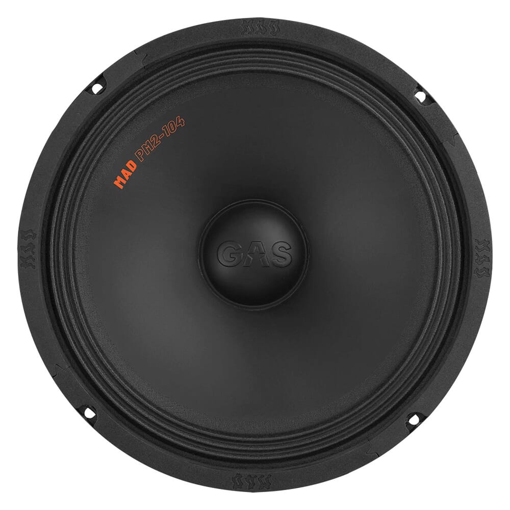 Midbasser - GAS MAD PM2-104GAS MAD PM2-104 er PM2-seriens største midbass, og er en ekstremt kapabel og brutal 10".PM2-104 er bygget med høy følsomhet på 97 dB, og utstyrt med en solid sort belagt papirkon, tøff dustcap med 3D-bokstaver, samt stålkurv med strukturlakk. Og kanskje det aller mest imponerende er at GAS har presset ned resonansfrekvensen til heftige 50 Hz!Her snakker vi sprøtt mye lyd for pengene!
