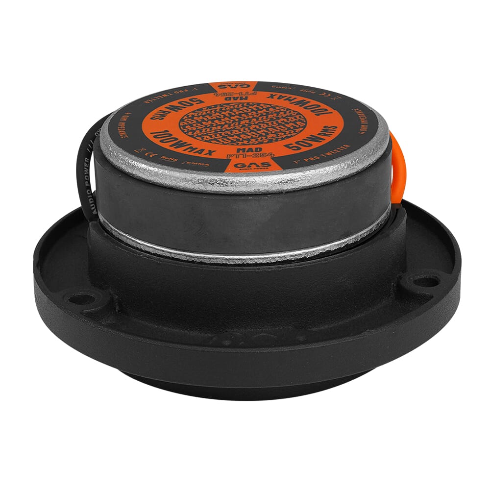 Diskanter - GAS MAD PT1-254GAS MAD PT1-254 er et par spilleglade 1" horndiskanter som leverer voldsomt stor lyd! Diskantene er utrustet med en solid 1" talespole, grov magnet og lettdreven konstruksjon, samtidig som den nyutviklede og bølgeformede spredningslinsen tar lyden til uante høyder.Disse diskantene kompletteres best med GAS sine gromme PM1 eller PM2 midbasser, men kan selvsagt brukes i alle ønskede SPL-oppsett.