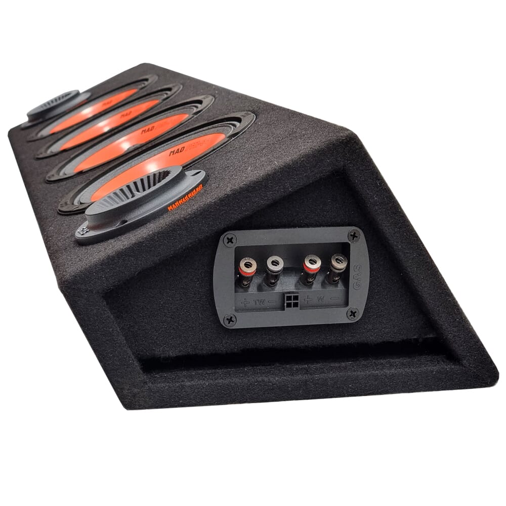 GAS MAD B1-212 er en basskasse med tøft design, fantastisk pris og tight bass. I kassen finner du to stk av det spilleglade basselementet MAD S1-124. For maksimal "bang for the buck" er kassen portet. Fire "føtter" medfølger for å kunne montere kassen liggende.