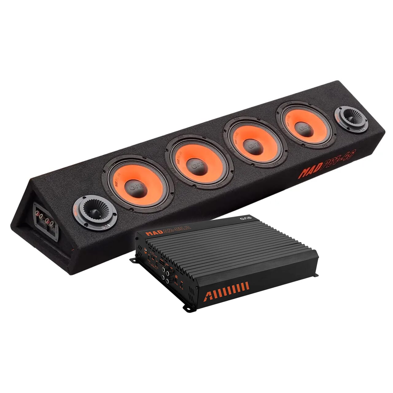 Knalltøff Raggarpakke som virkelig drar på! Raggarplanken MAD PB1-46 fra GAS bestående av 4 stk 6,5" SPL midbasser og 2 horndiskanter er her kombinert med forsterkeren MAD A2-85.2 - også fra GAS. De nye produktene fra MAD-serien er bedre enn noensinne, med gjennomtenkte detaljer og stilig utseende.