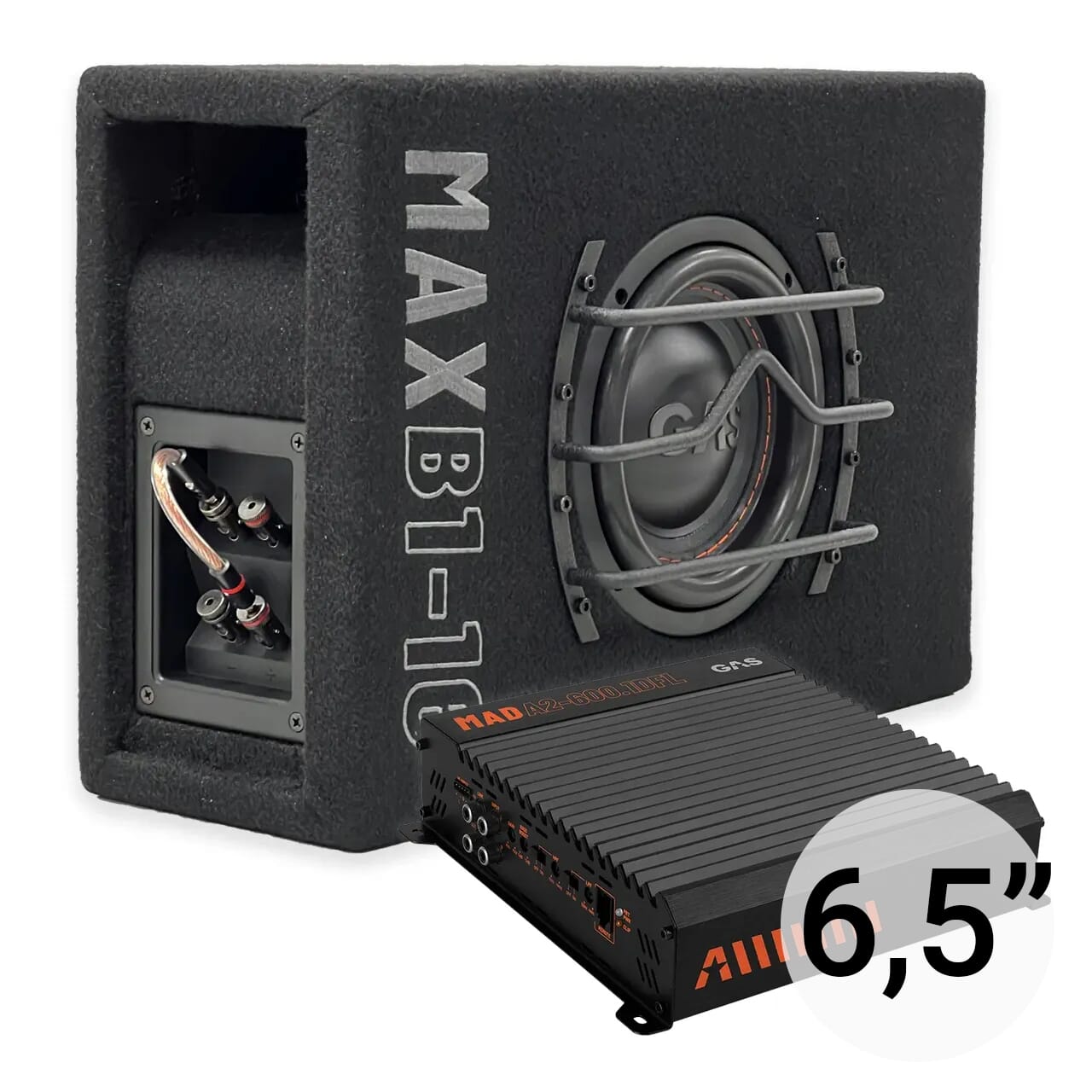 Pakke med 6,5" subwoofer i kompakt kasse og 600W RMS monoforsterker