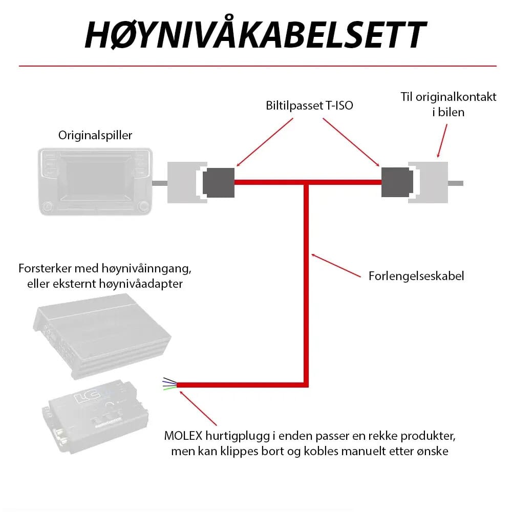 ISO kabelsett for signaluttak til forsterker, m/støtte for retur av høytt.signal