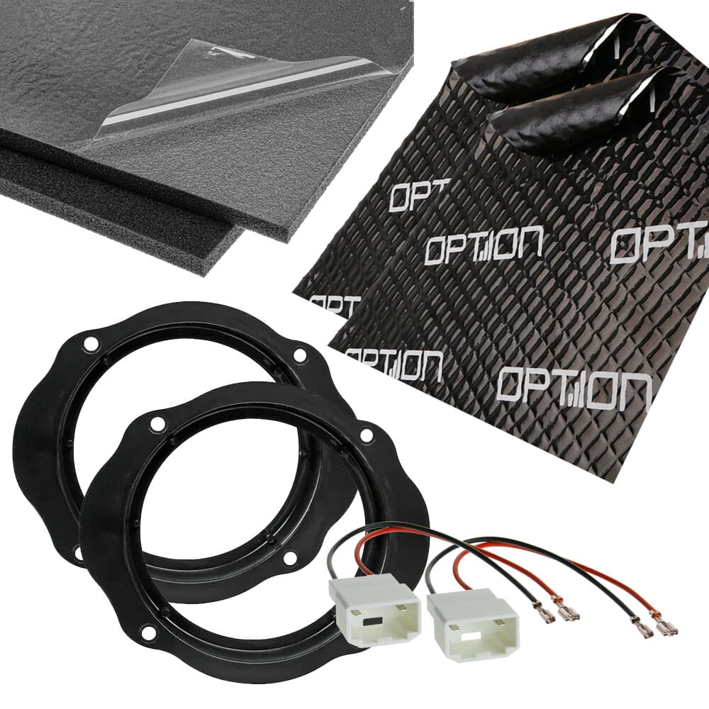 Høyttalersettet inkluderer biltilpassede adapterringer. I dette settet vil det bare være innfesting og kobling av diskanthøyttaler i original posisjon som utgjør det lille ekstra arbeid. Til mellomtonene i døren medfølger det biltilpasset kabelovergang. Det medfølger også lett demping for to dører, som prikken over i-en i din høyttaleroppgradering.