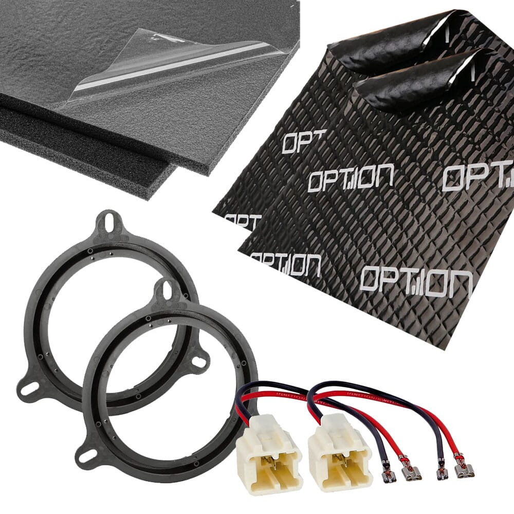 Høyttalersettet inkluderer biltilpassede adapterringer. I dette settet vil det bare være innfesting og kobling av diskanthøyttaler i original posisjon som utgjør det lille ekstra arbeid. Til mellomtonene i døren medfølger det biltilpasset kabelovergang. Det medfølger også lett demping for to dører, som prikken over i-en i din høyttaleroppgradering.