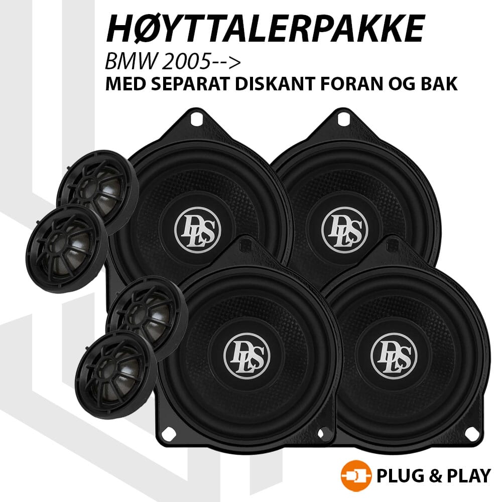 Denne pakken inneholder 4 stk mellomtoner og 4 stk diskanter ment for plassering i original høyttalerplassering foran og bak på BMW med separat diskantplassering fra før av. Ulike BMW-modeller har ulikt høyttaleroppsett originalt. De fleste BMW med fabrikkoppgradert stereo som eksempelvis 676 HIFI, 677 HIFI DSP eller 688 Harman Kardon har normalt sett separat diskantplassering både foran og bak (med enkelte unntak). Denne pakken er perfekt oppgradering for et slikt tilfelle.