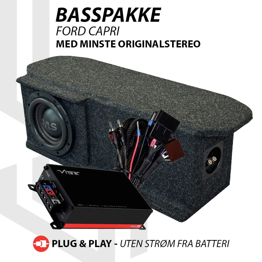 Sjeldent har vi bygd så mange prototyper av basskasser til en bil som det vi har gjort til Ford Capri. Jakten på den perfekte kombinasjon av type basskasse, størrelse basskasse og størrelse basshøyttaler kan noen ganger bli tidkrevende når man vet hvilket bassresultat både vi selv og kundegruppen normalt ønsker seg. Det som fungerte bra i tidligere prosjekter kan oppleves totalt ulikt i ny bil hvor bilens kupe gir en helt annen akustikk og hvor lydsignal fra originalspiller er farget helt annerledes. Dette forklarer viktigheten av å alltid teste ut en god mengde utstyr, inntil man finner kombinasjonen som veier opp for svakheter i bilens originale lydsignal og tilfører det man virkelig savner i lydbildet.