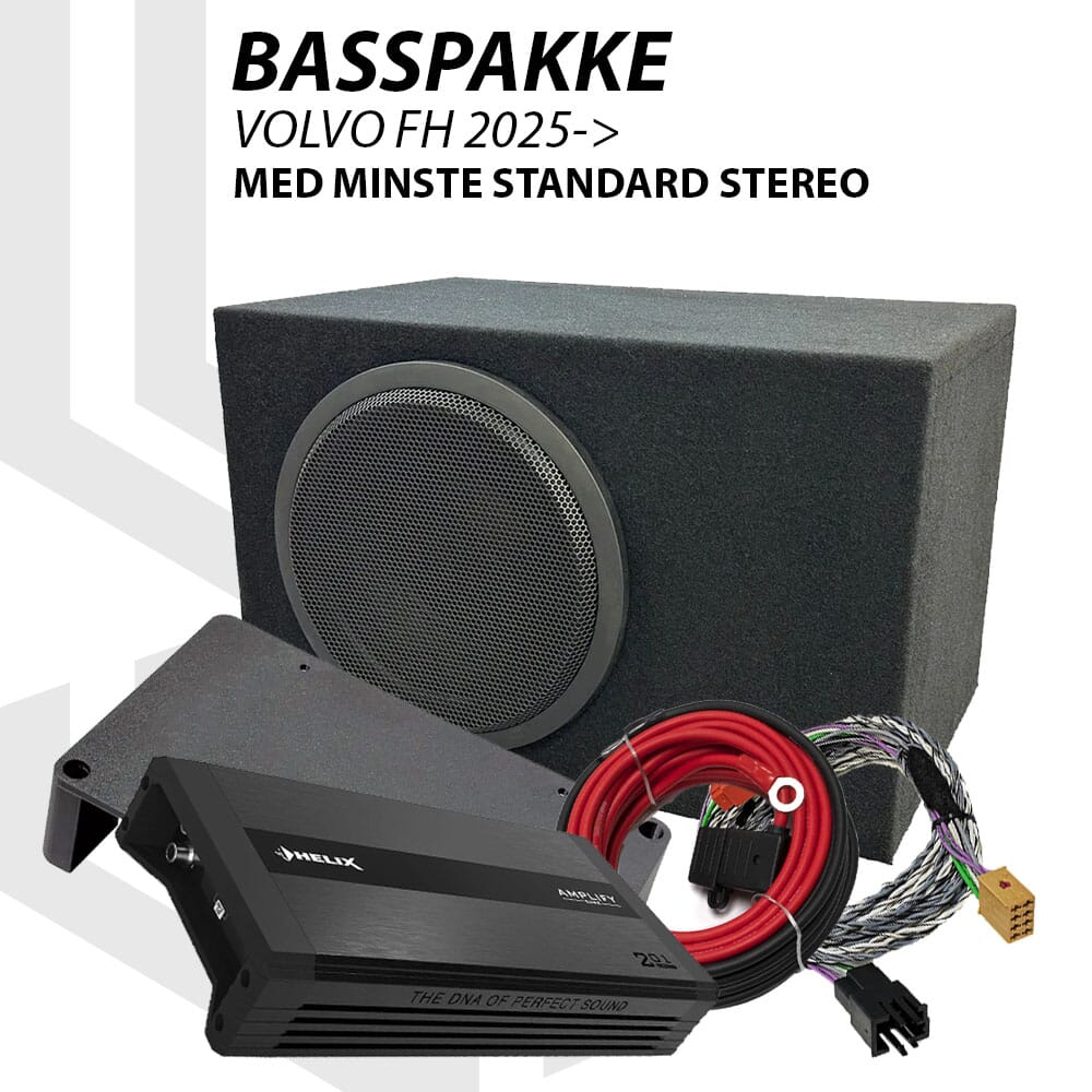 Den ideelle løsningen for deg som er fornøyd med lyden som den er i lastebilen din, men ønsker deg et bedre bassfundament. Her får du en komplett pakke med 24V bassforsterker, tilhørende monteringsplate for ryddig installasjon, kabelsett for å enkelt hente signal fra lastebilens originale spillermodul og ikke minst en god basskasse! Det er lett å undervurdere hva et godt bassfundament faktisk gjør for helhetsinntrykket. For svært mange er det nettopp en basspakke som det her man har behov for.