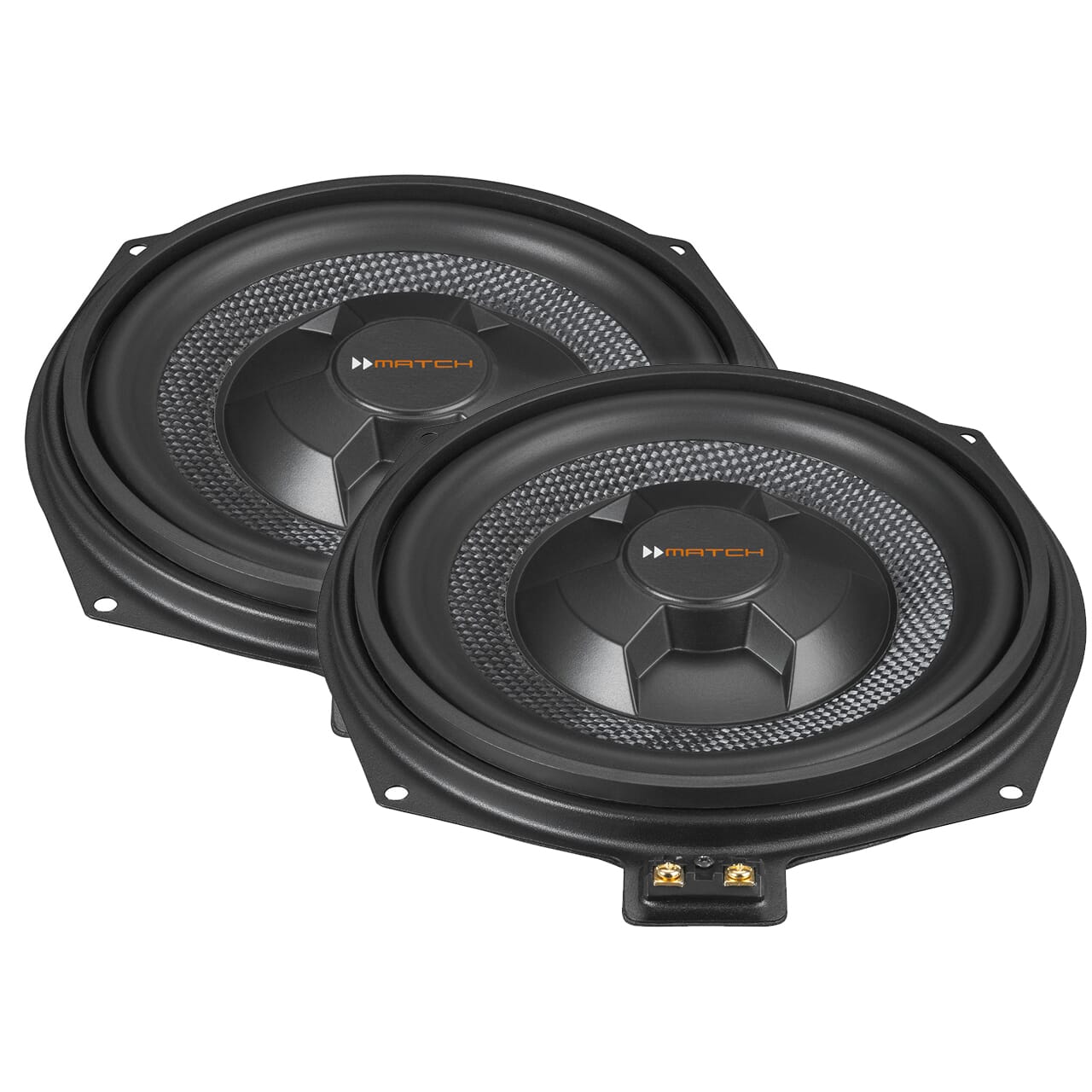 - Basshøyttalere: Monteres inn i originalposisjon uner stolene foran.