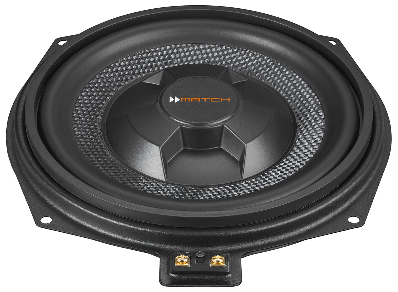 Selv med god bassoppgradering fra originalt kan mye ønske seg mer. MATCH DSP-forsterker har egen RCA linjeutgang som du enkelt kan hente signal fra til ettermontert bassforsterker, om du kommer på tanken om å ettermontere en basspakke i bagasjerommet.