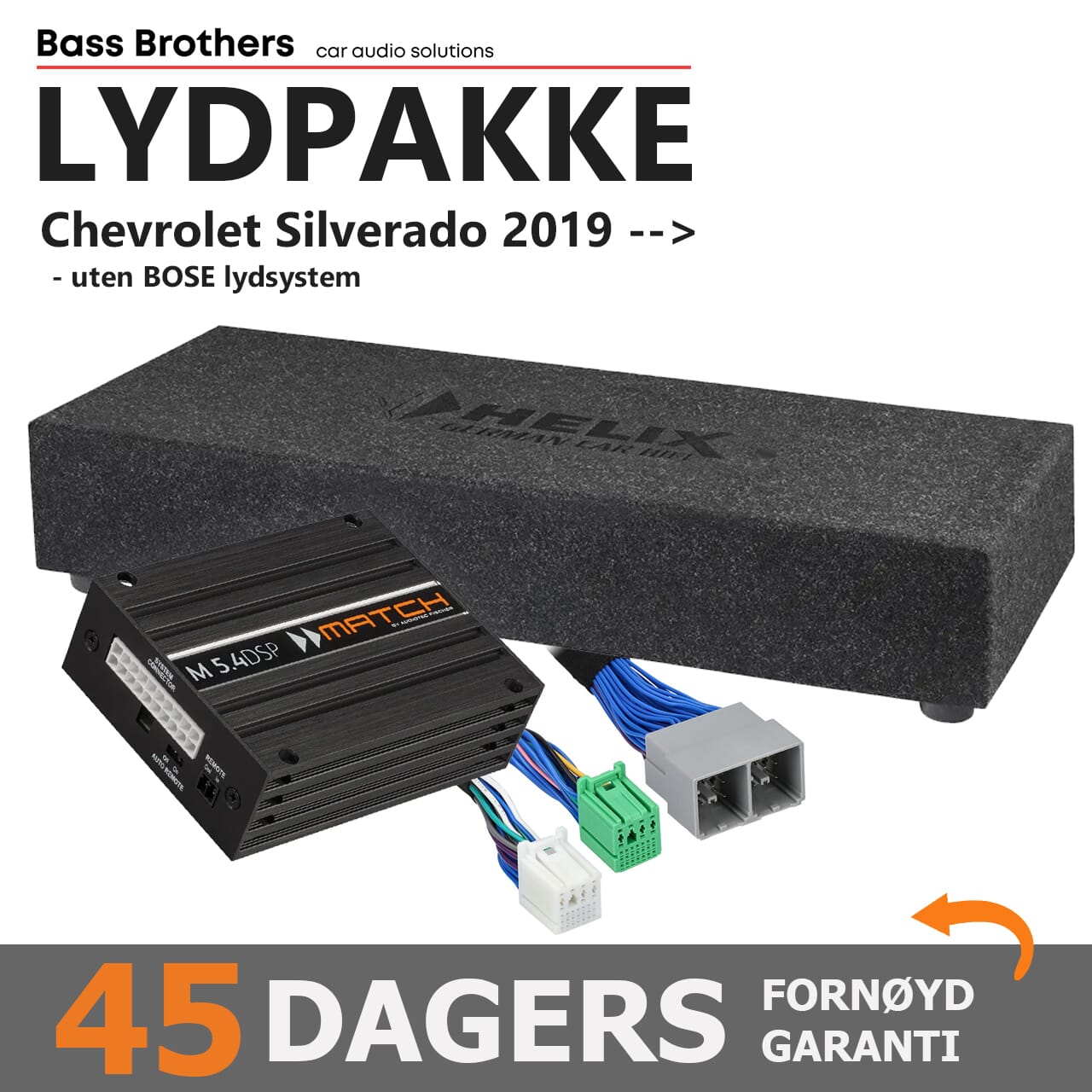 Oppgraderingspakke med 10" basskasse for Chevrolet Silverado 2019 og nyere, uten BOSE, og med RPO radiokode IOR (se info lenger ned).