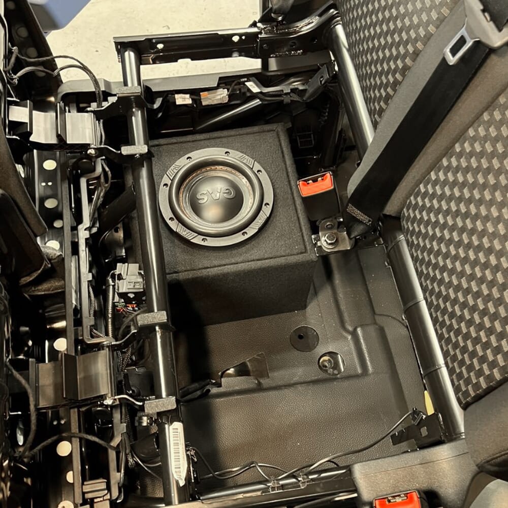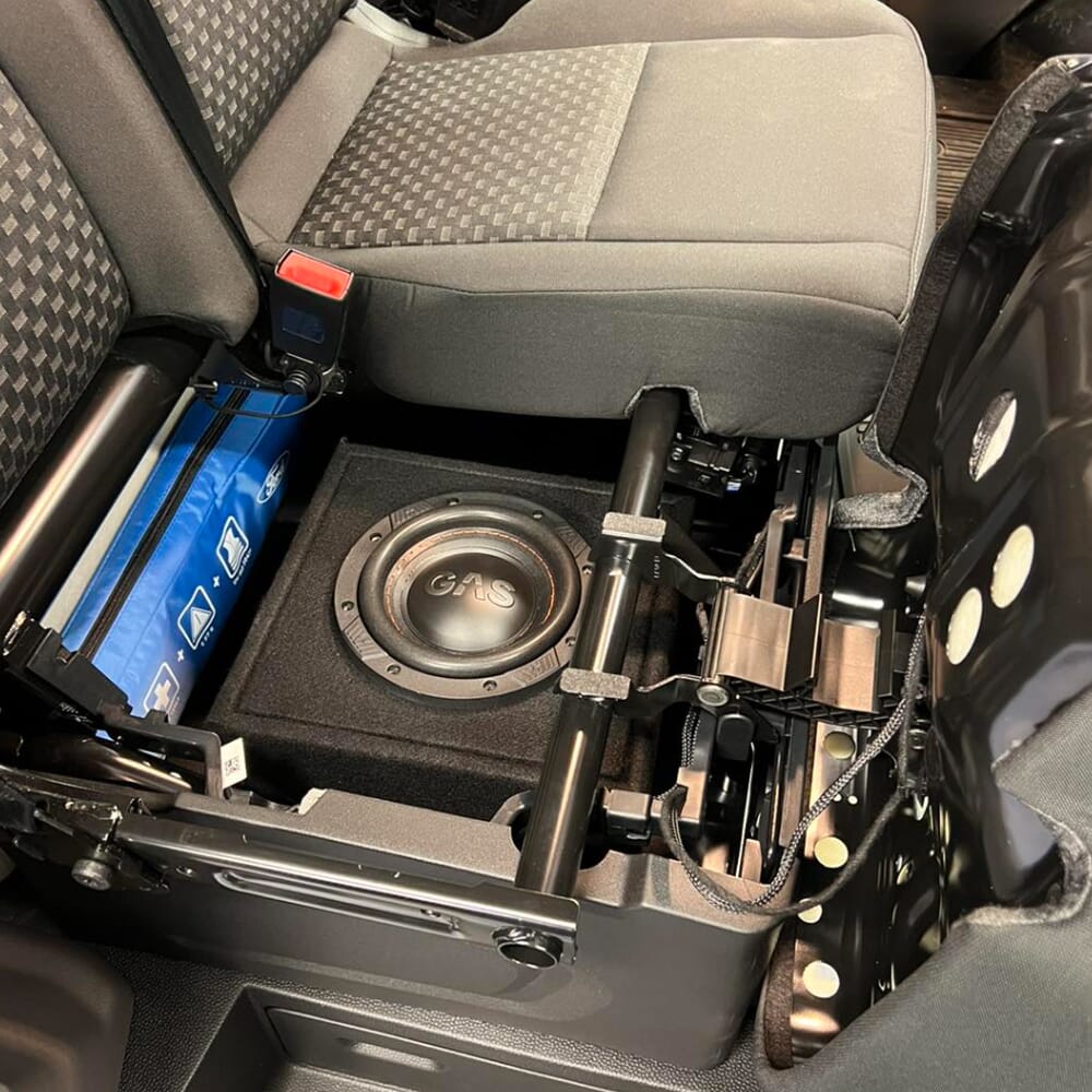 Kassen plasseres under et av setene, og forsterkeren monteres lett inne i dashbordet.