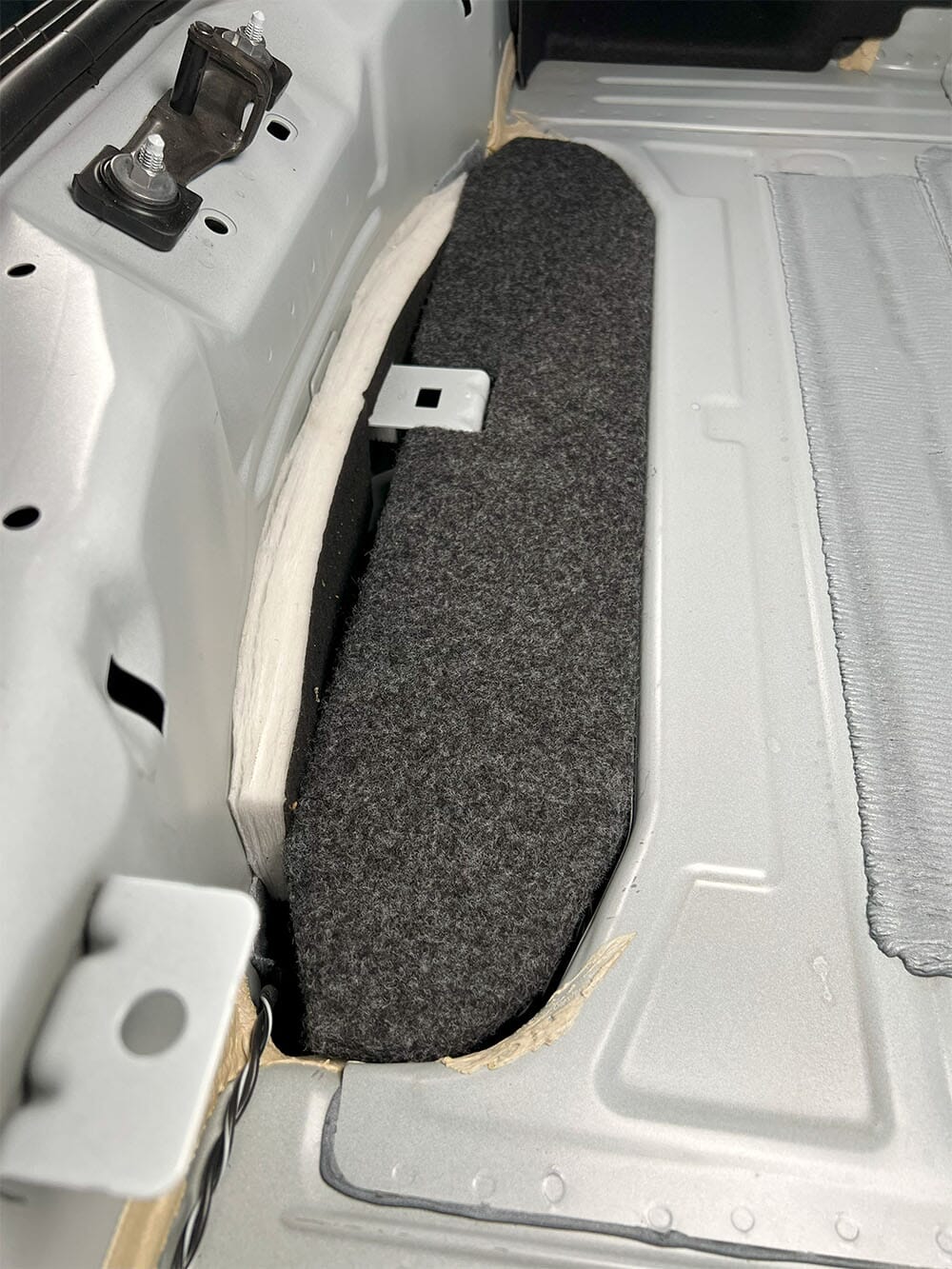 - Basskasse: Ny basskasse erstatter bilens originale bass og fyller ut resterende rom under gulvet i bagasjerommet.