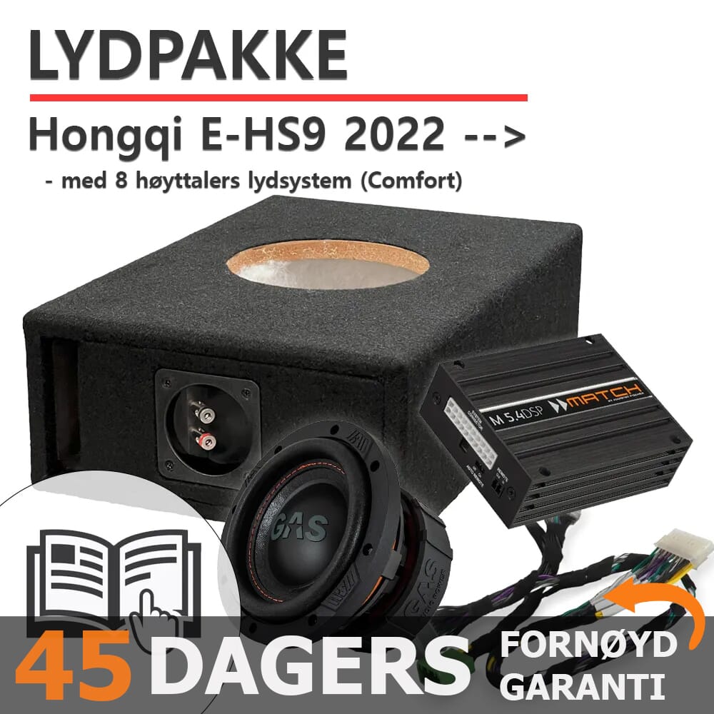 Denne pakken har vi hos Bass Brothers utviklet for å gi en oppgradering av det originale lydanlegget i Hongqi E-HS9 med utstyrsnivå Comfort. Disse utgavene har et lydsystem bestående av 8 høyttalere.