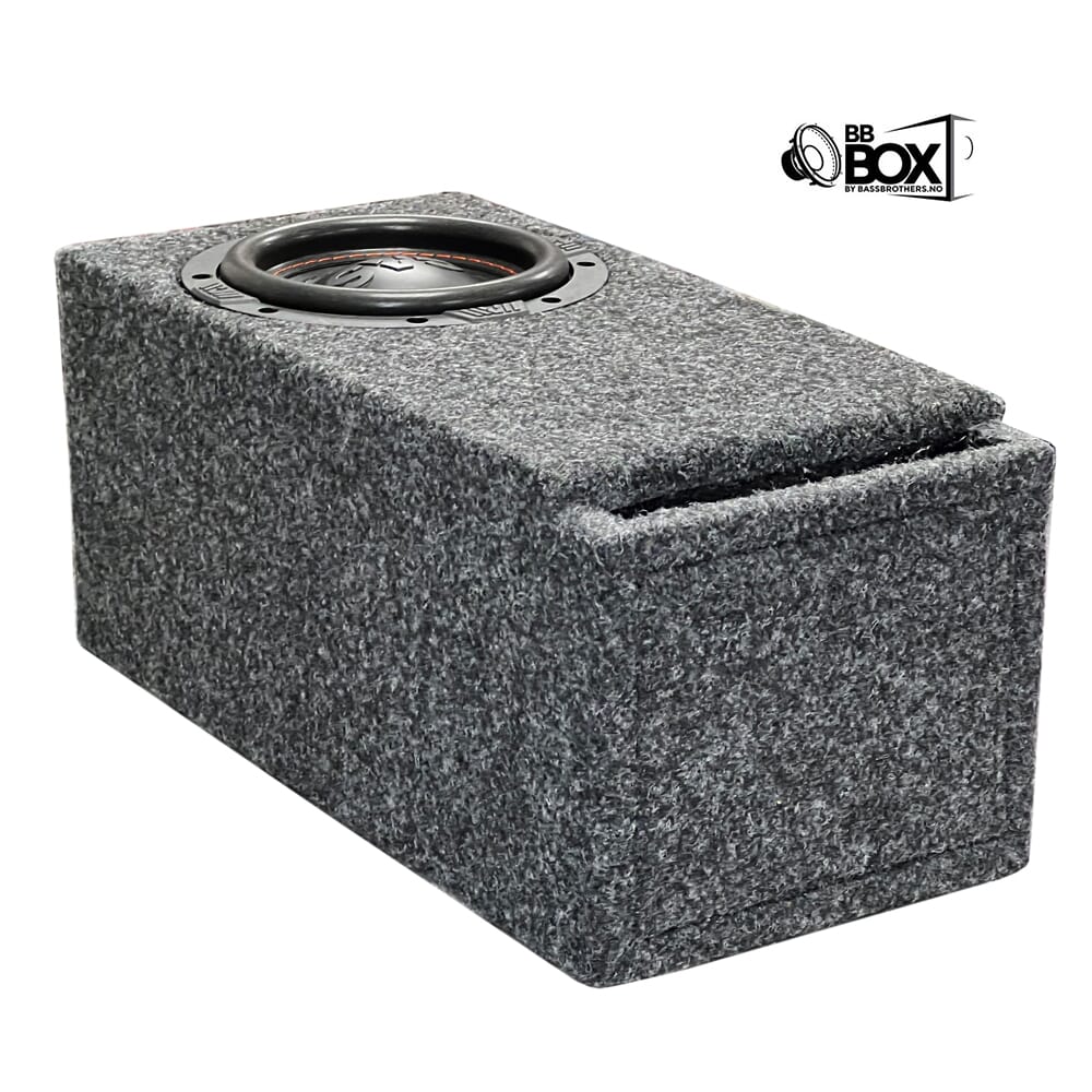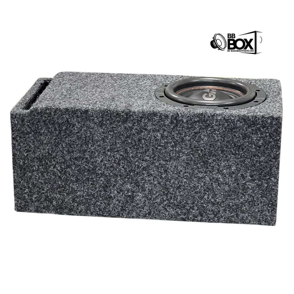 Subwooferen er en 6,5" fra GAS MAX S1-serie ferdig installert i en kasse som passer perfekt inn i rom under førersetet - helt skjult. Kassen er spesiallaget for denne plasseringen.