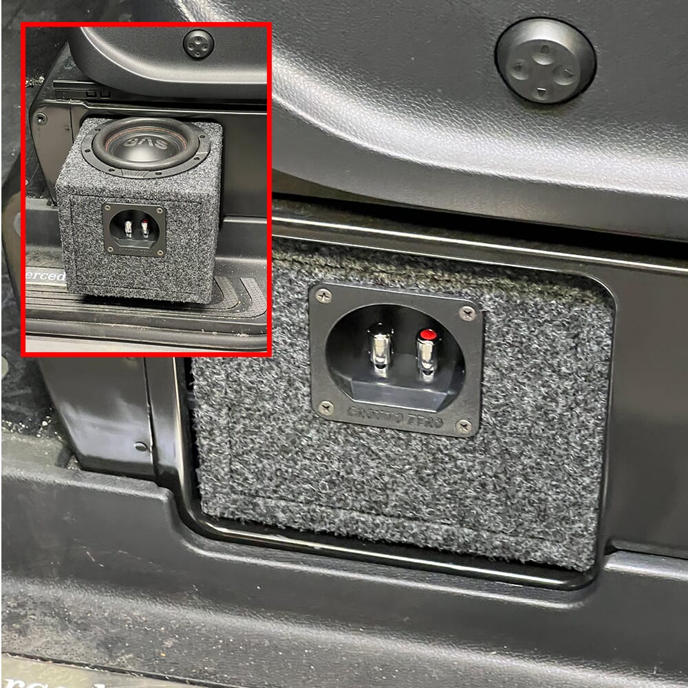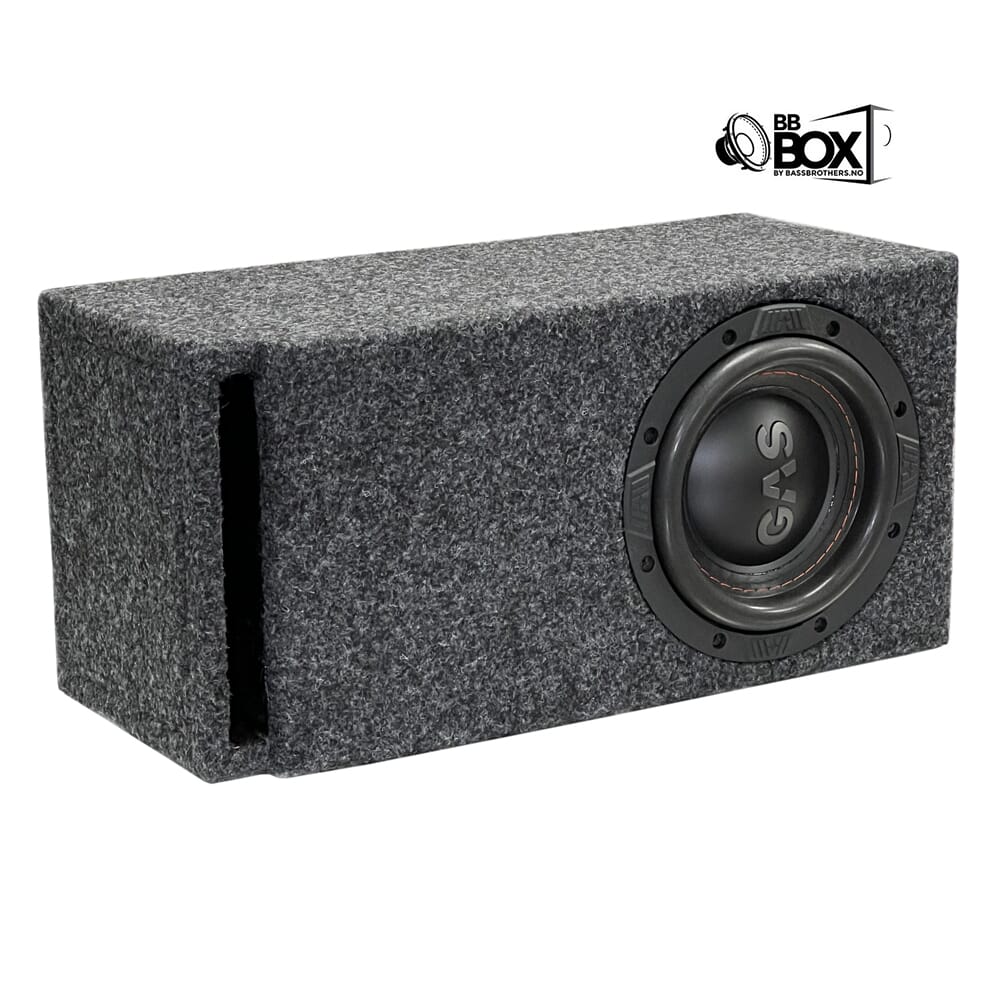 Subwooferen er en 6,5" fra GAS MAX S1-serie ferdig installert i en kasse som passer perfekt inn i rom under førersetet - helt skjult. Kassen er spesiallaget for denne plasseringen.